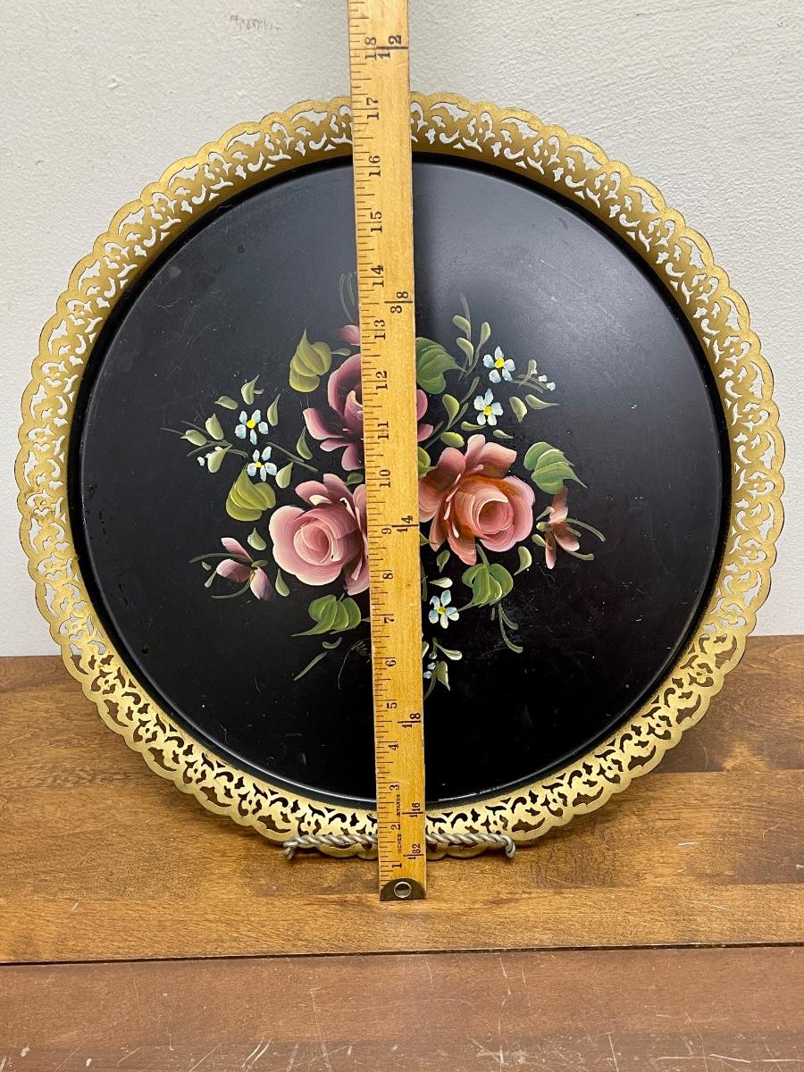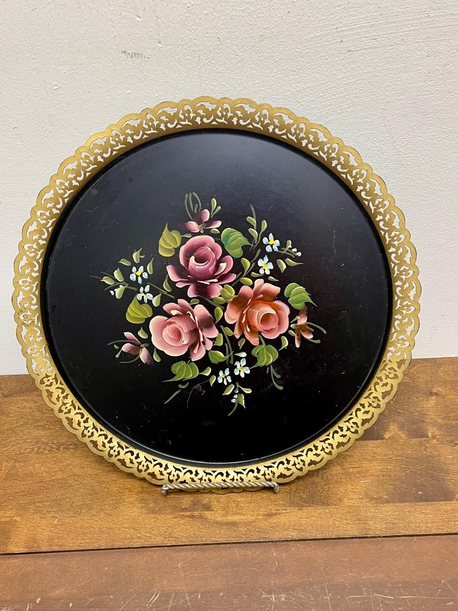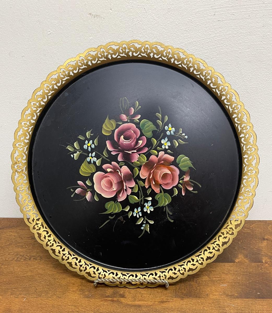 Vintage Nashco Products New York Metal Tole Tray Hand Painted 17" dia