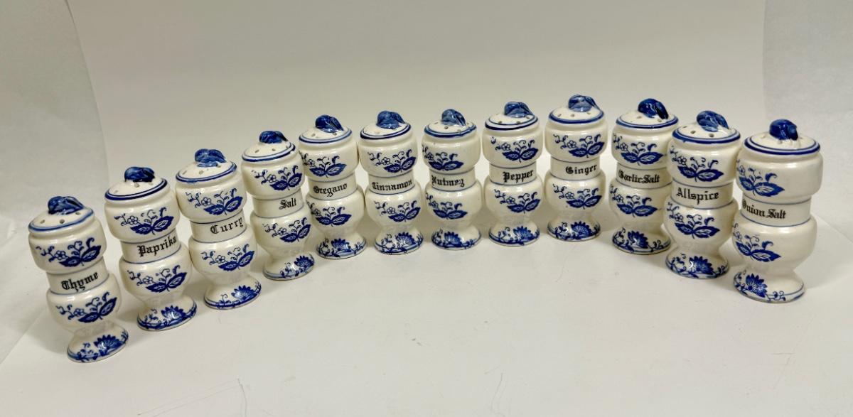 Vintage Spice Jars Blue Onion Set of 12 Jars Made in Japan