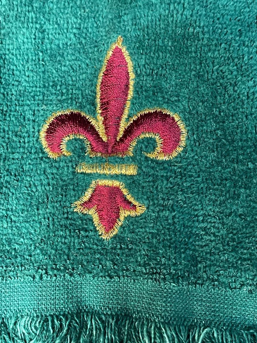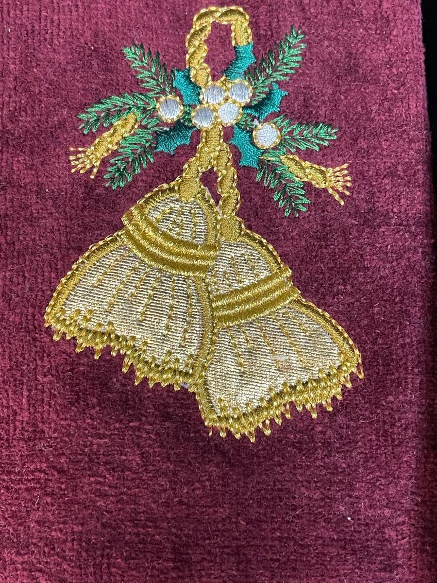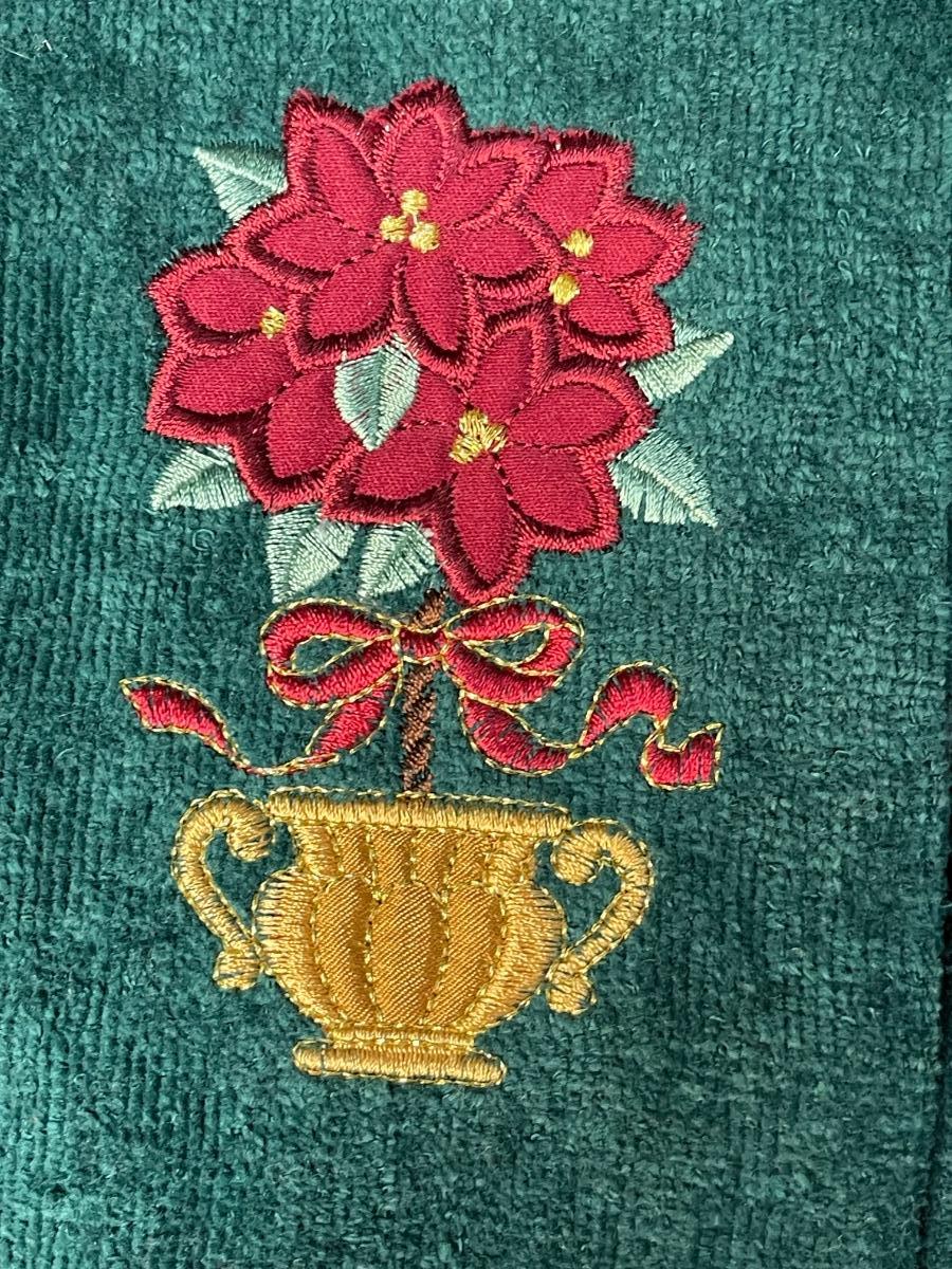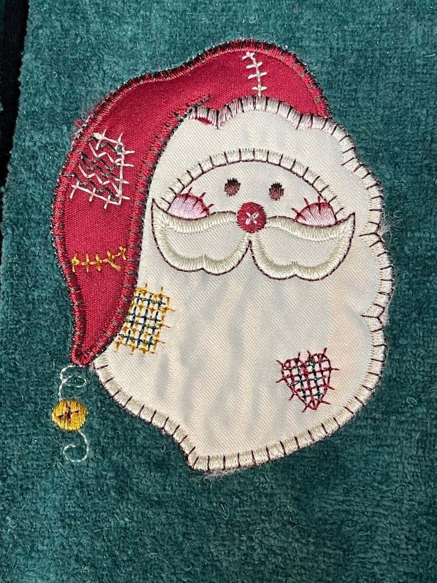 Set of 6 Red and Green Christmas Holiday Applique Fingertip Hand Towels. In good condition.
