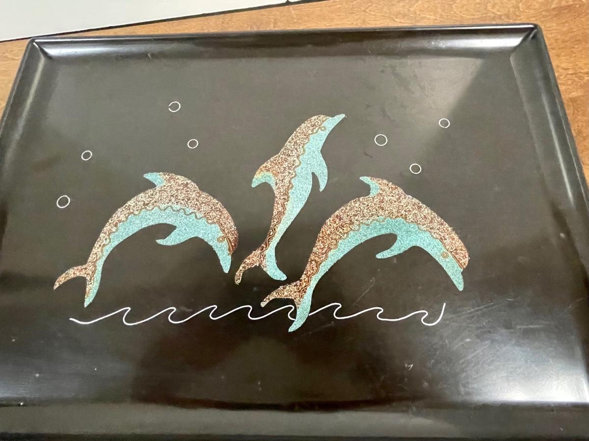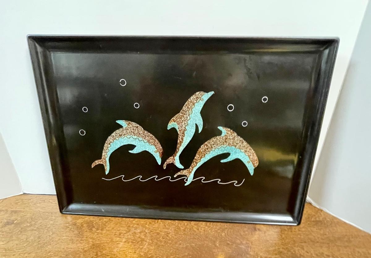 Vintage Dolphin Themed Black Serving Tray Platter. In good vintage condition.