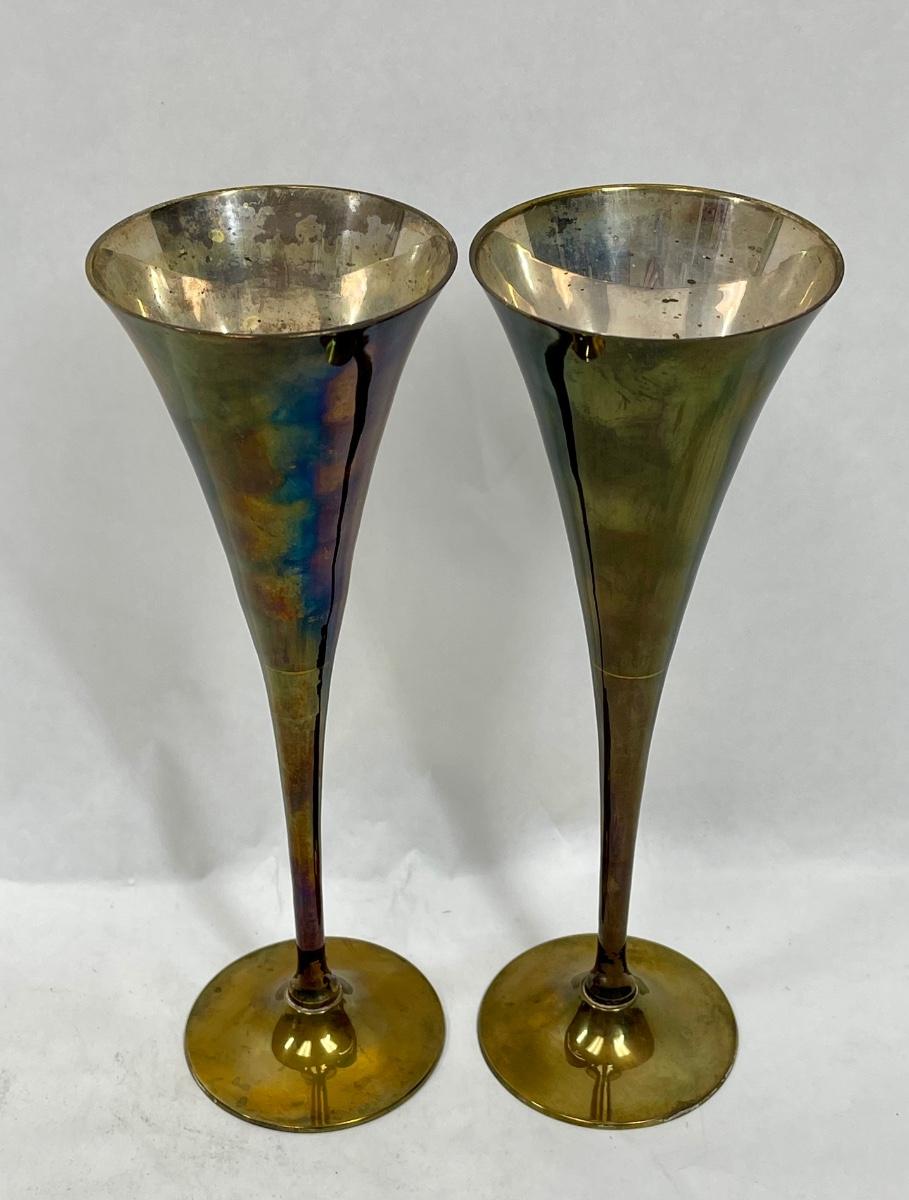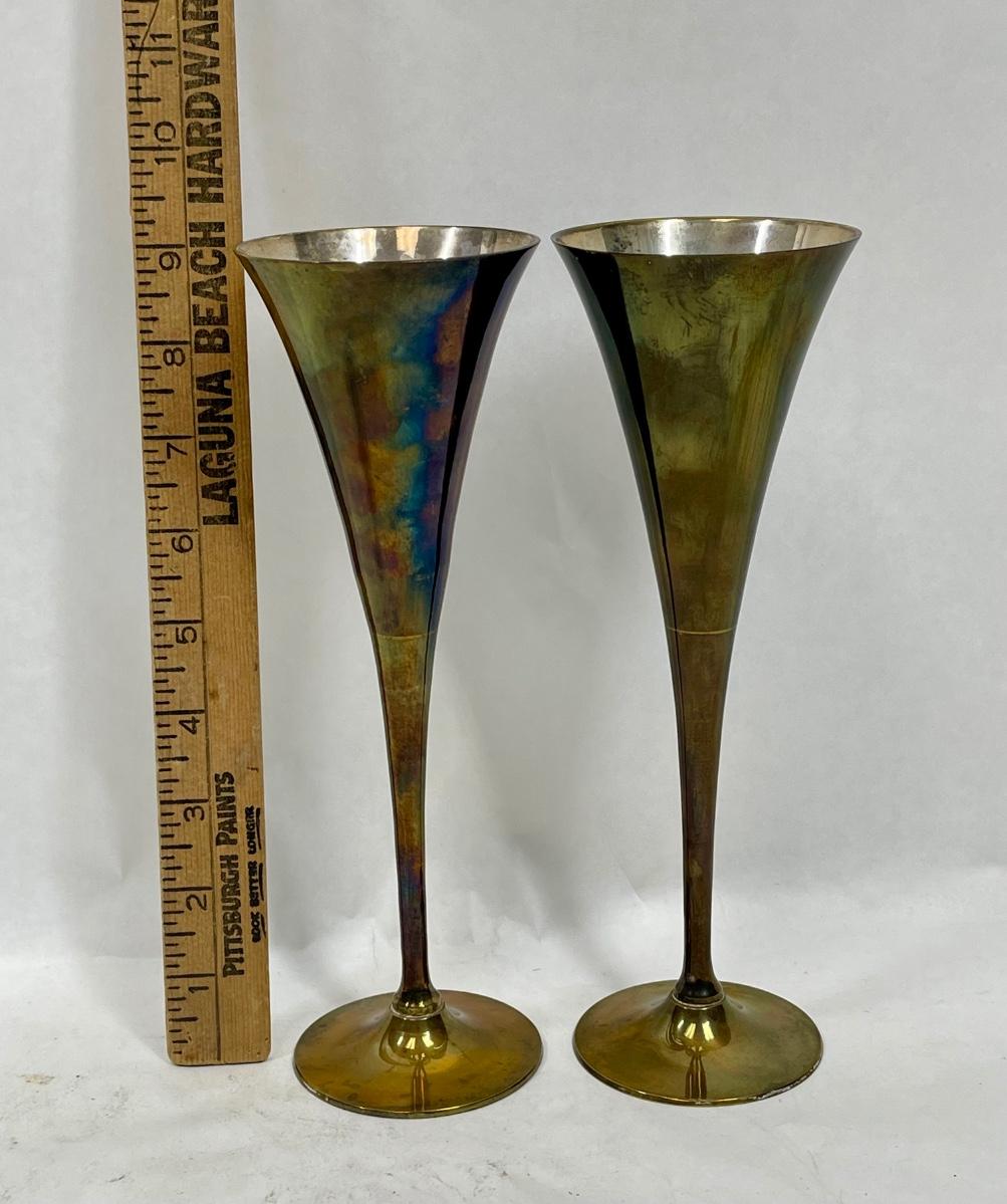 Silver Plated Brass Champagne Toasting Flutes