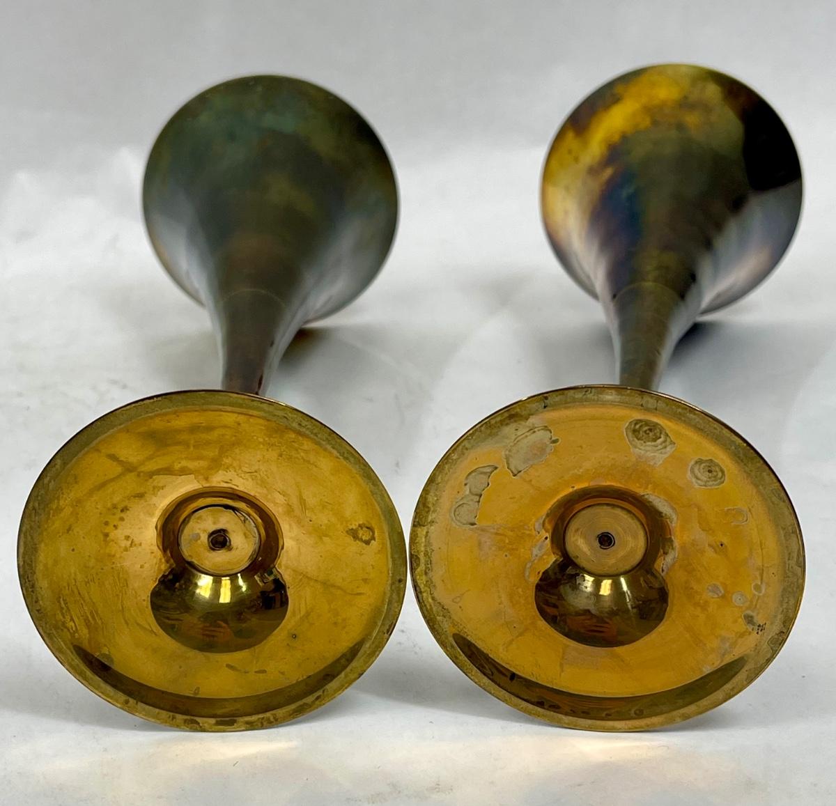 No markings, approx. 9" tall. Tarnished, but would likely clean up to a beautiful luster.