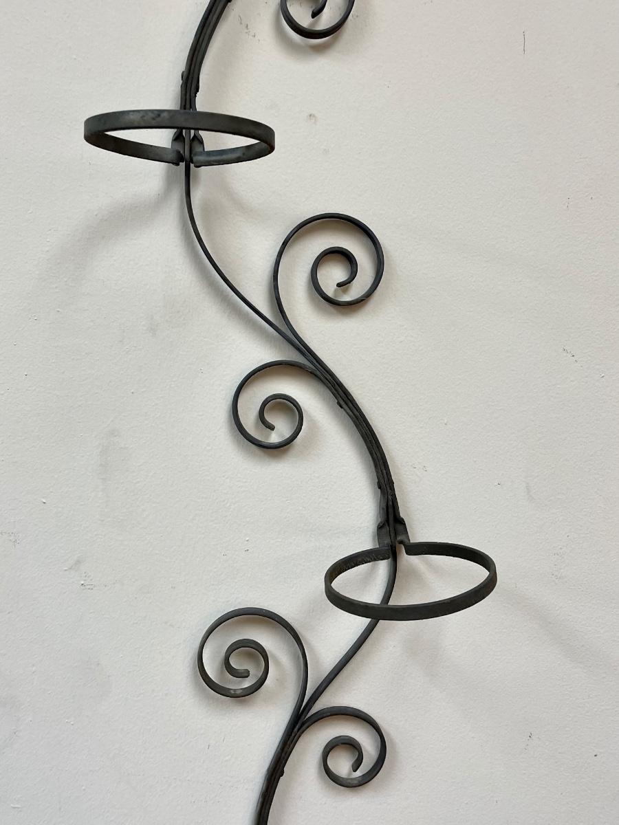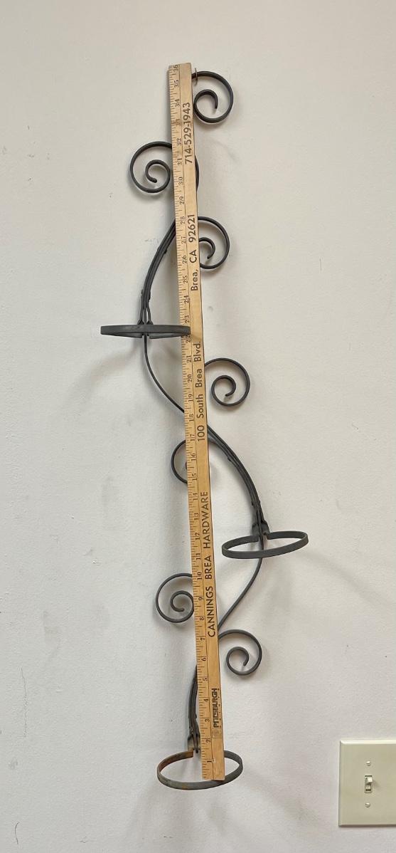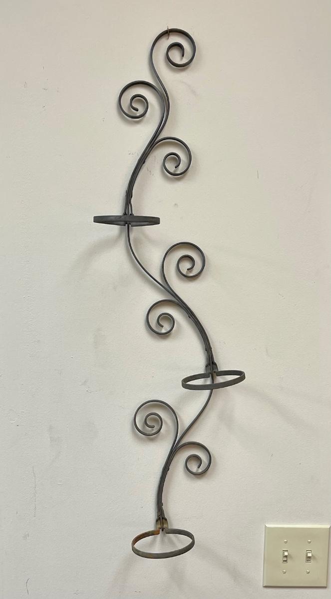 Wall Hanging Scrolled Wrought Iron Triple Planter Pot Holder Garden Art. In good condition. About 3' length.