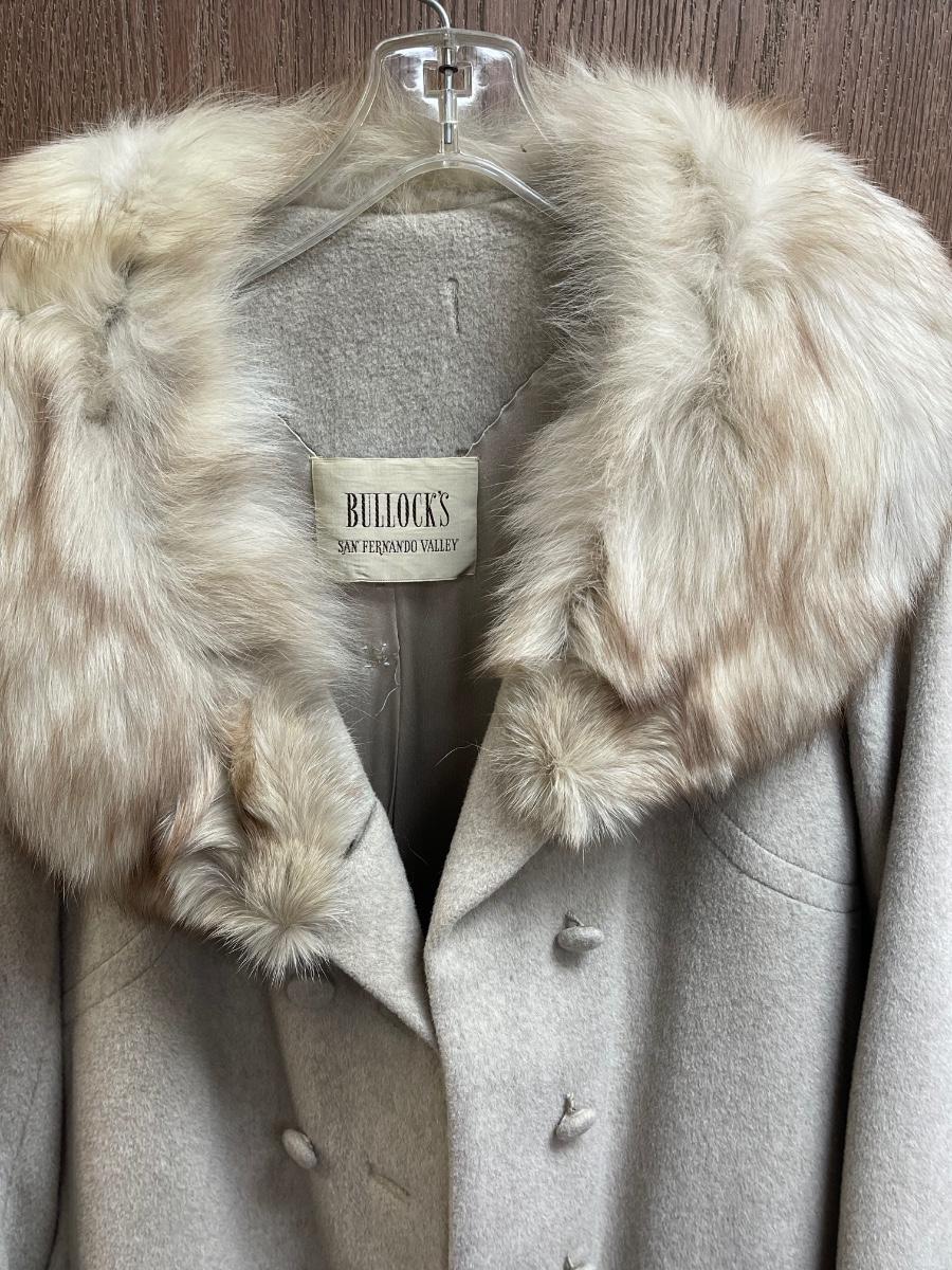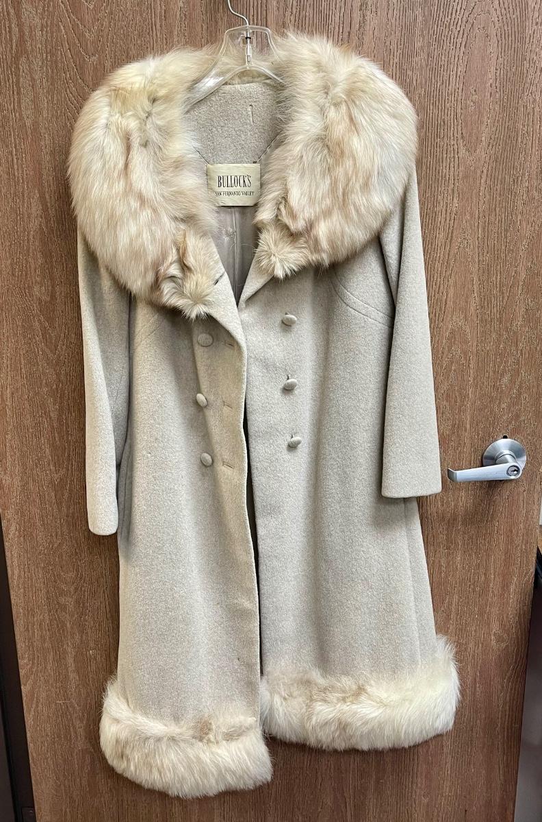 Vintage Bullocks Wool Women's Coat with Faux Fur