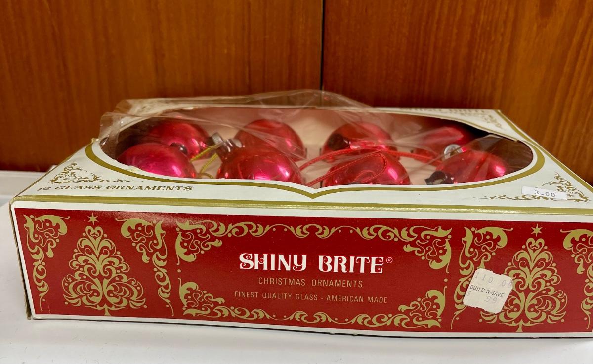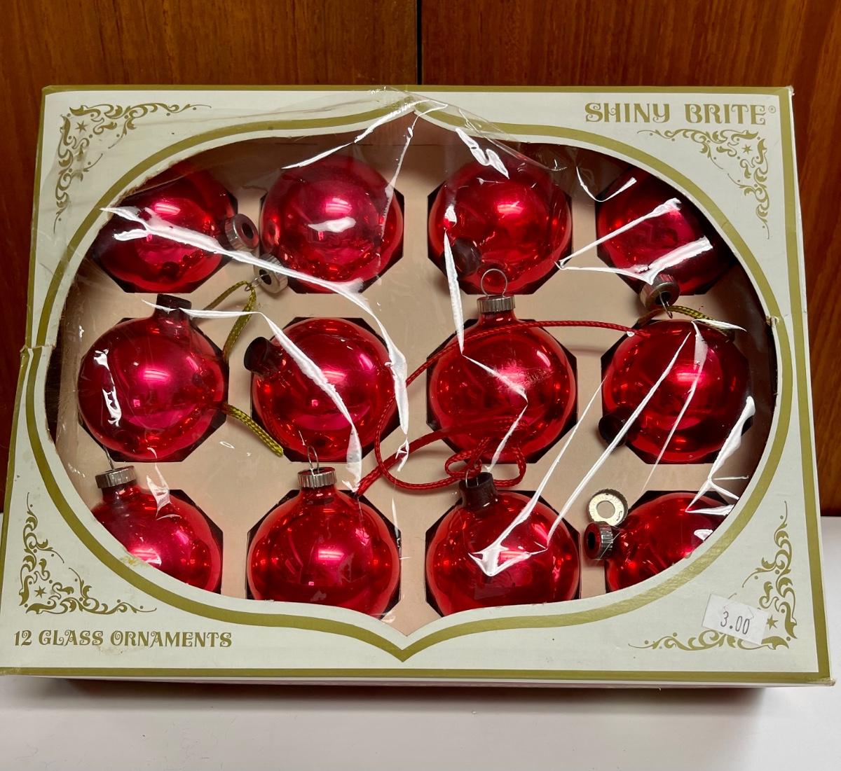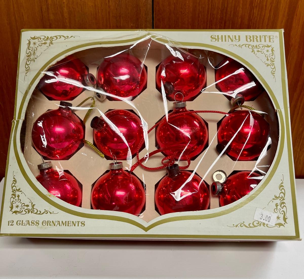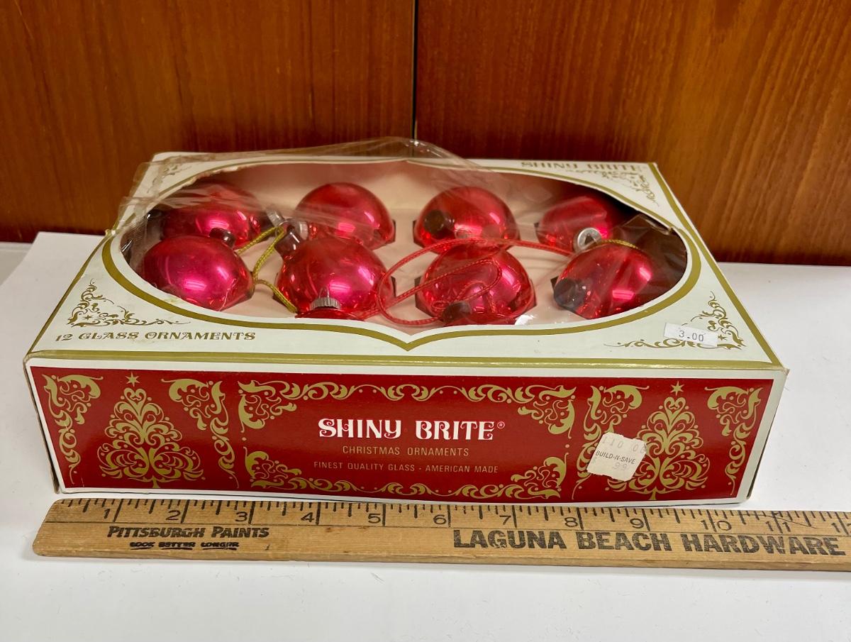 Pinkish Red Shiney Brite Christmas Tree Glass Ornaments