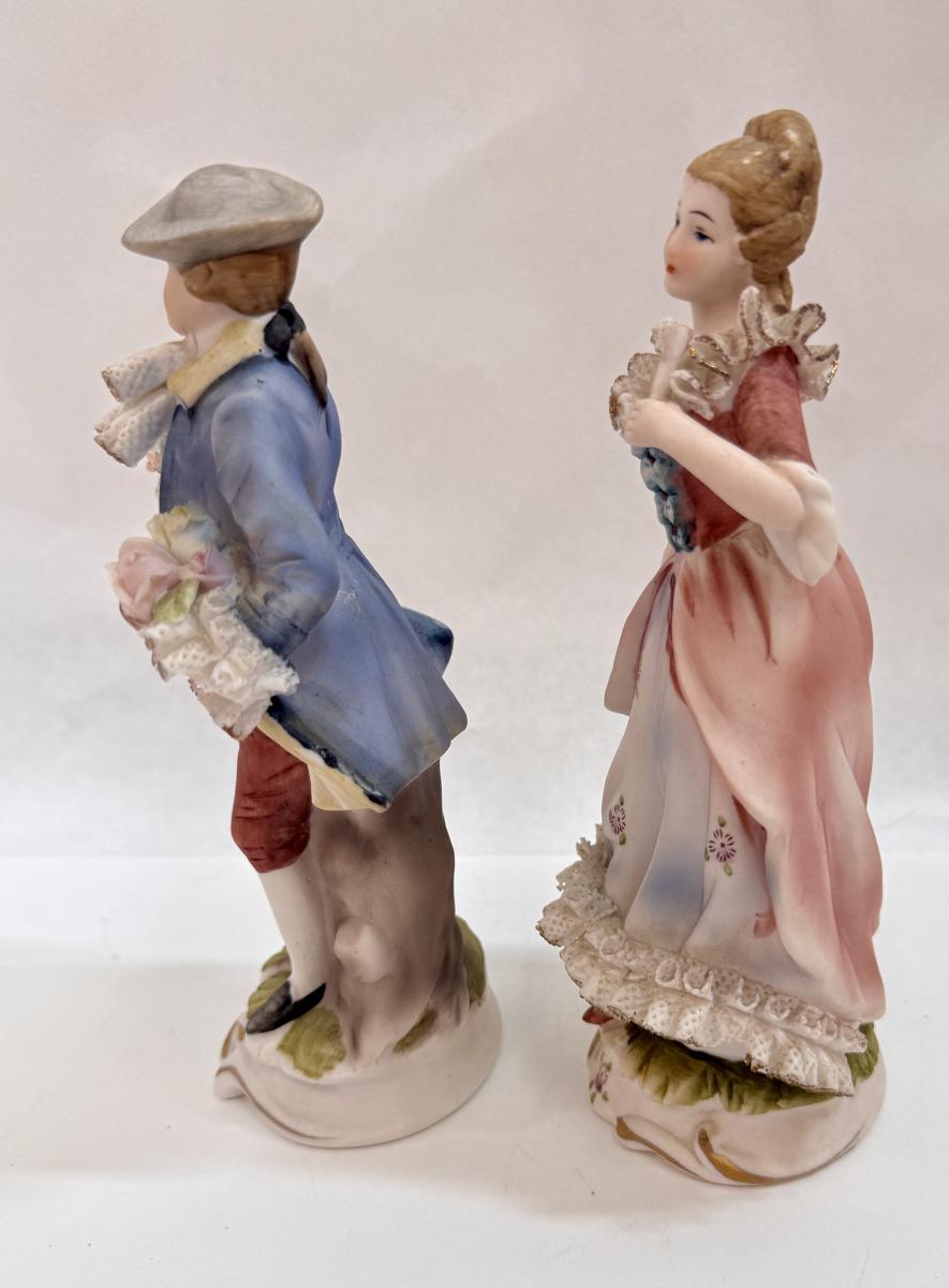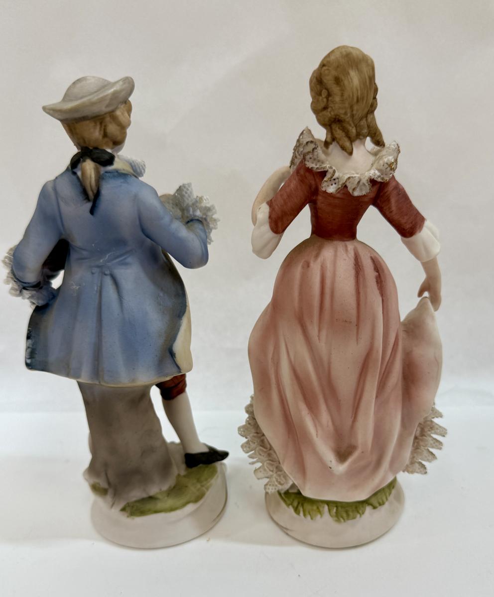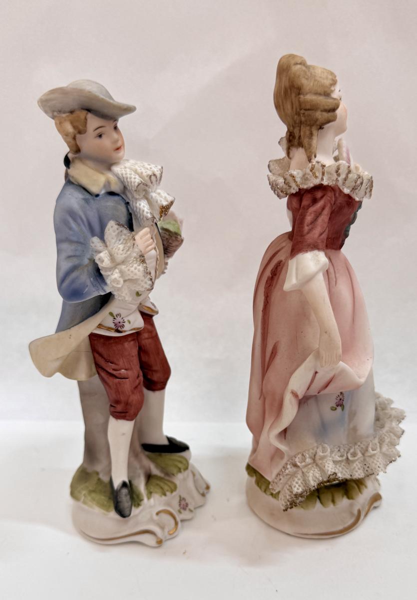 Vintage Antique Japanese Porcelain Meissen-style Lace Trim Rococo Figurines Man & Woman