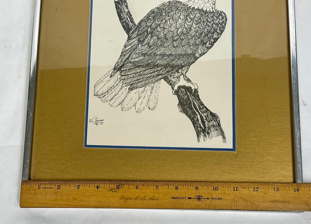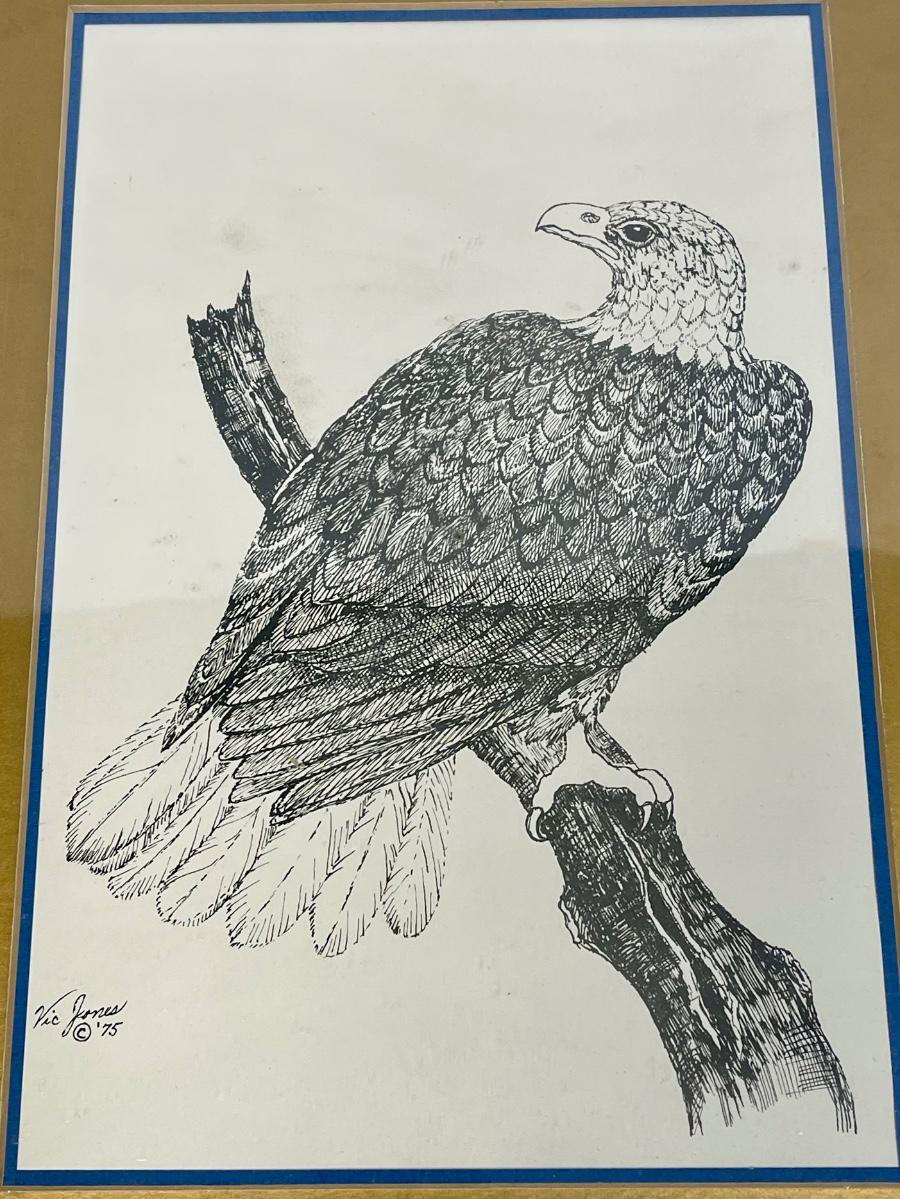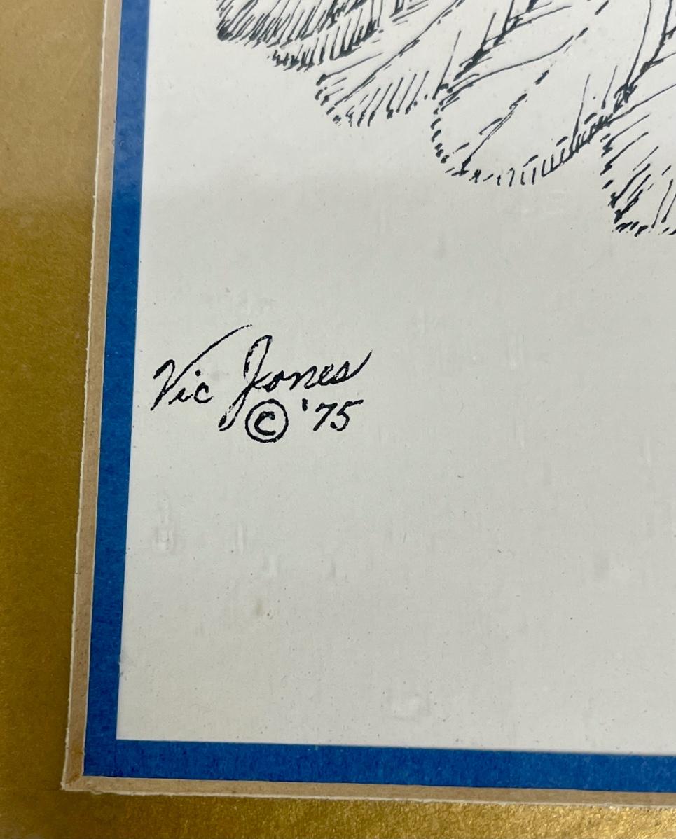 Signed by the artist, Vic Jones in 1975. Matted and framed. Overall size is 18"x 14".