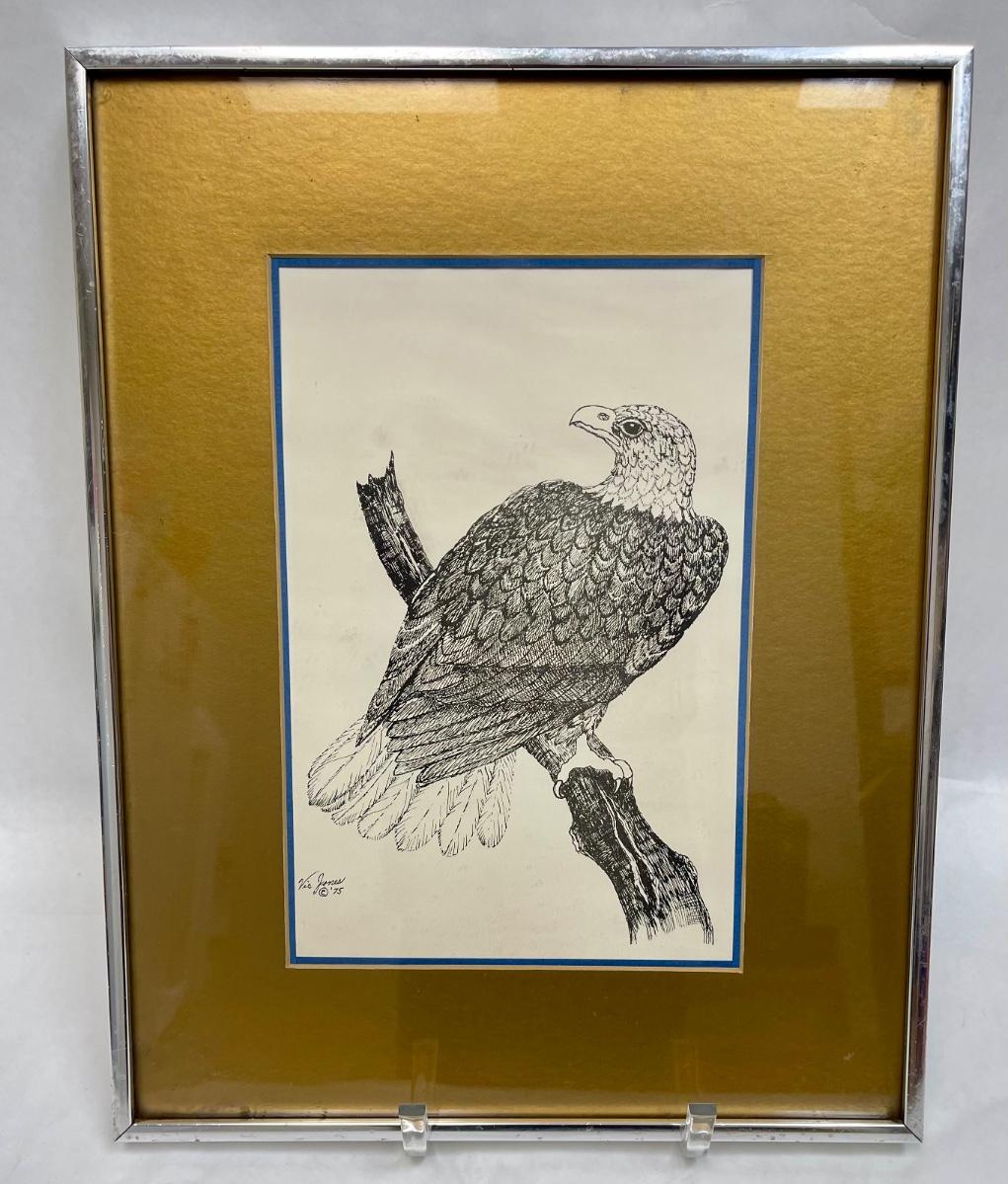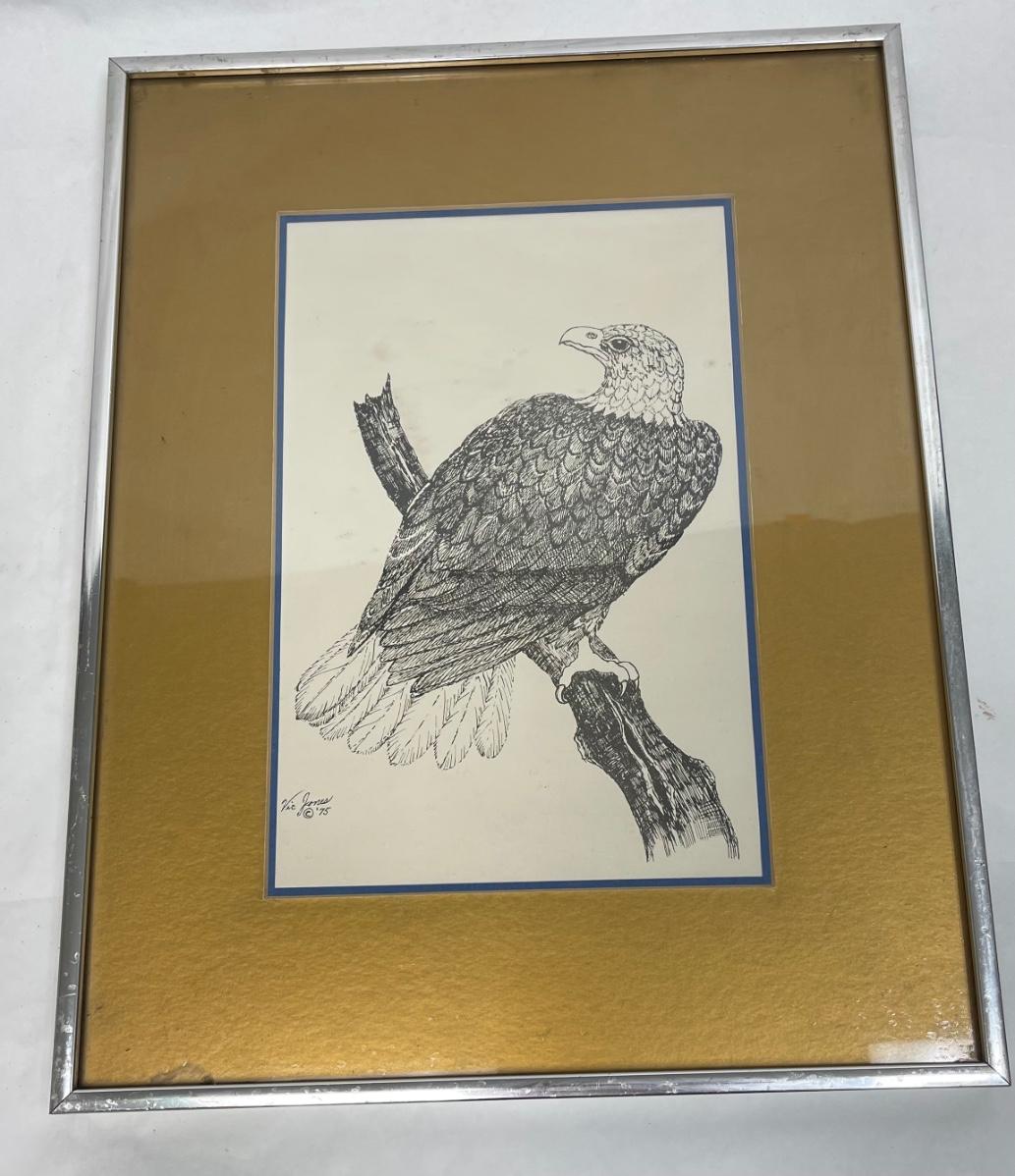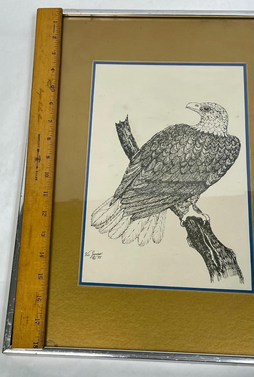 Signed by the artist, Vic Jones in 1975. Matted and framed. Overall size is 18"x 14".