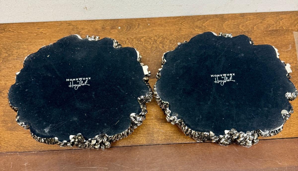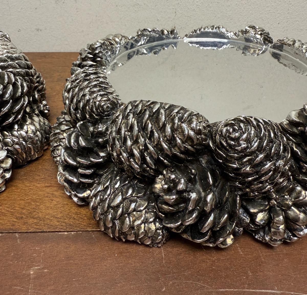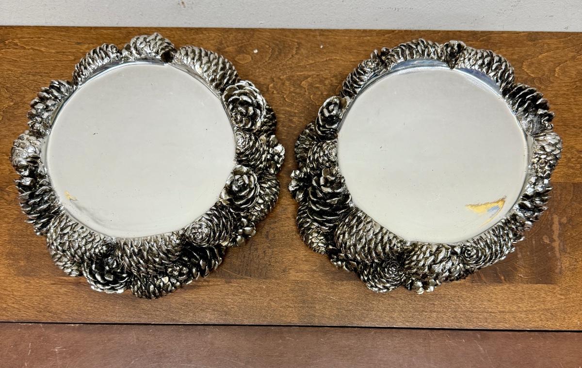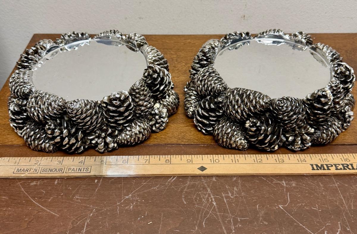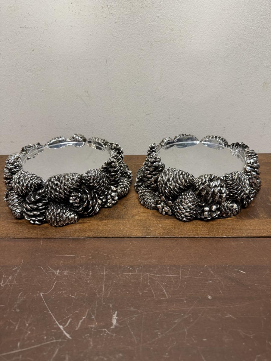 (2) Homeworx Harry Slatkin Pedestal Display Silver Tone Pinecone Design