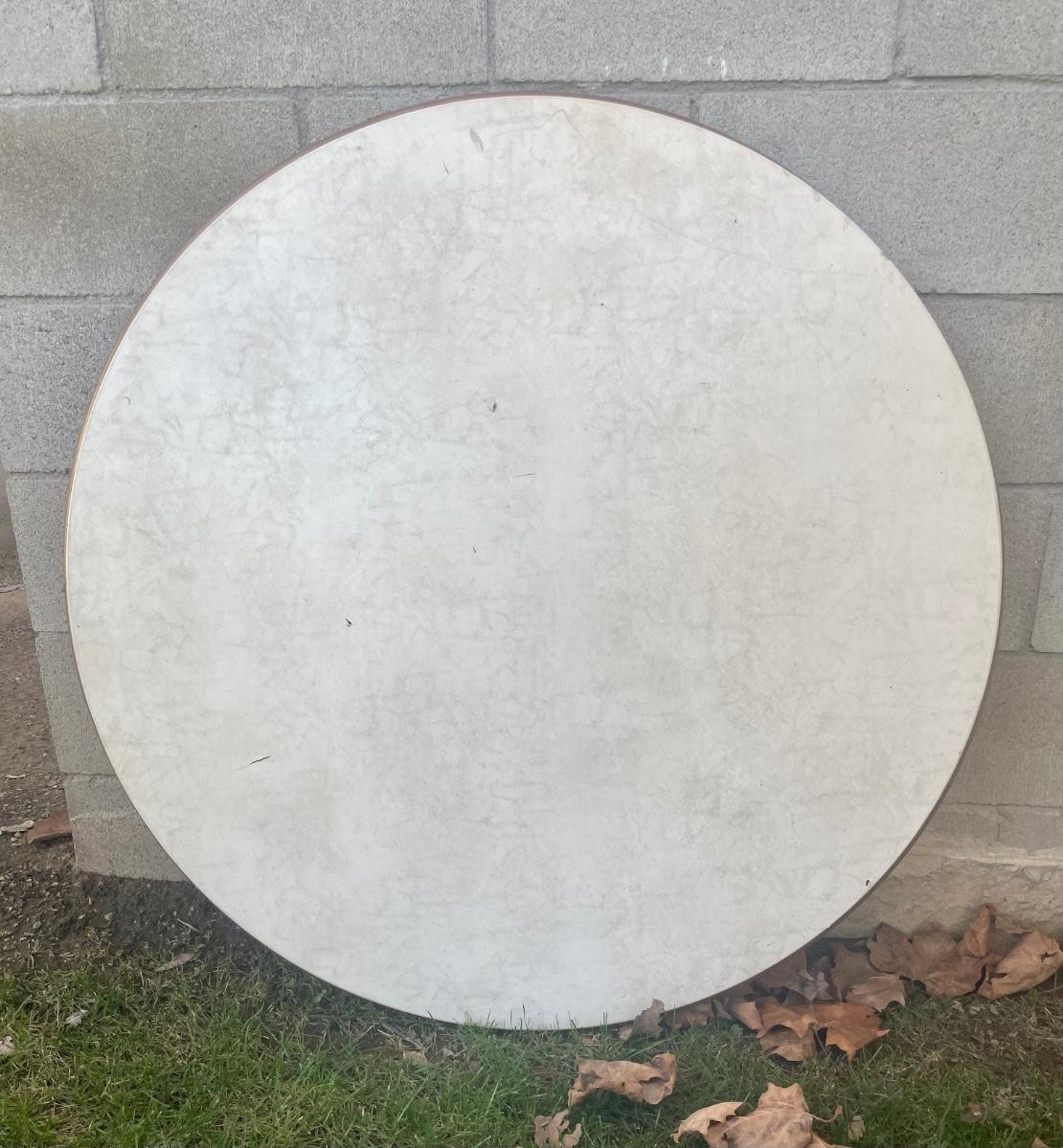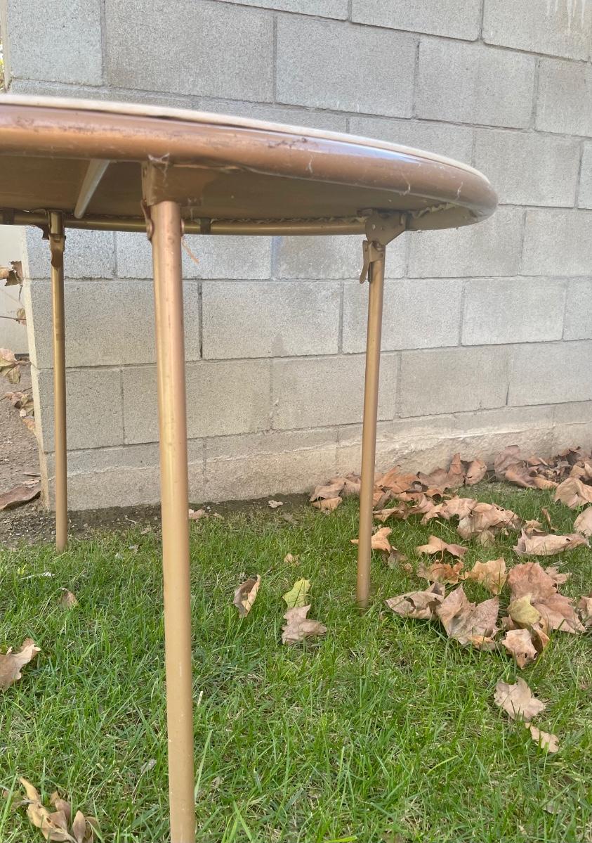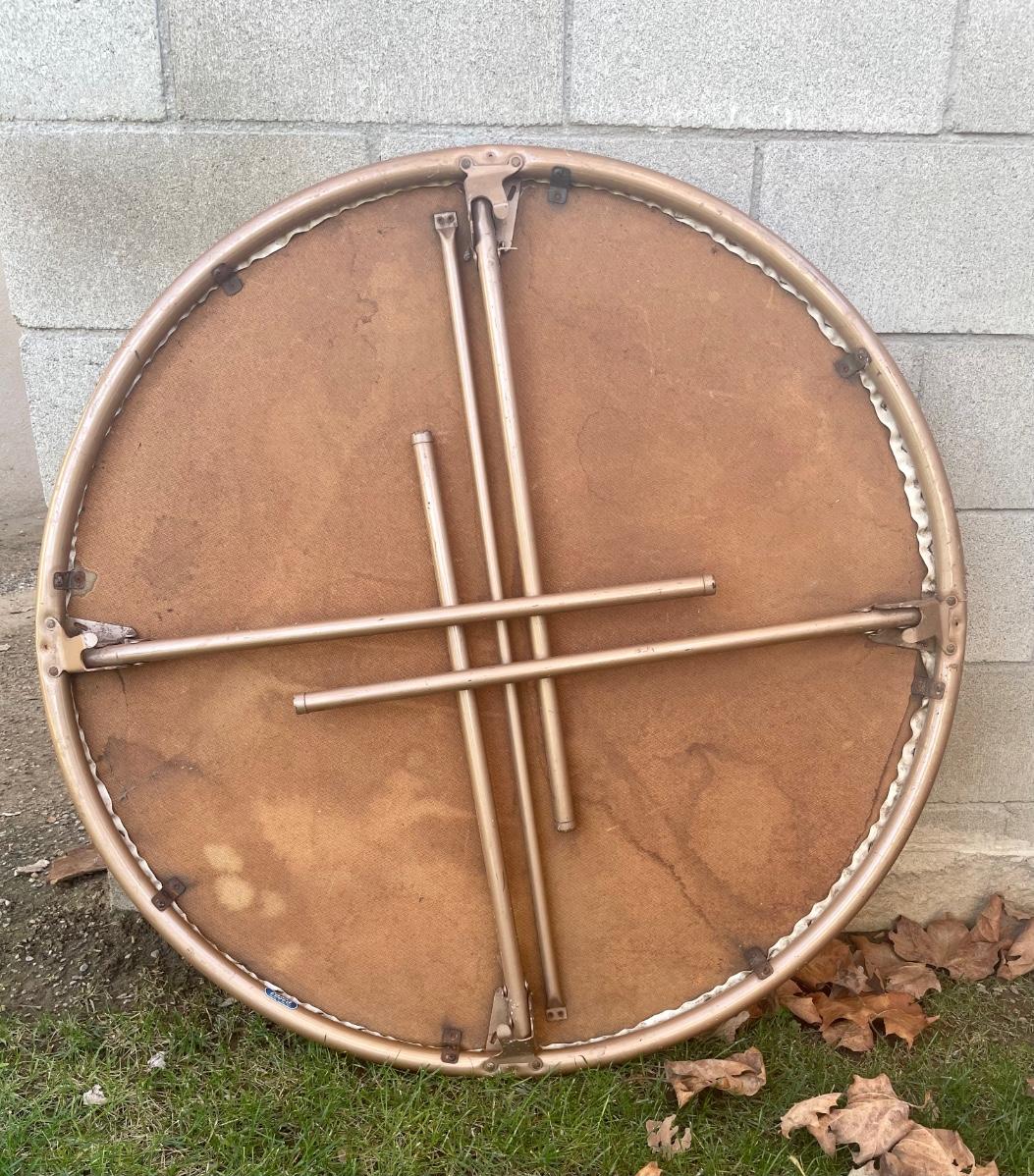 Round card table with folding legs. Made by Costco of Indiana.