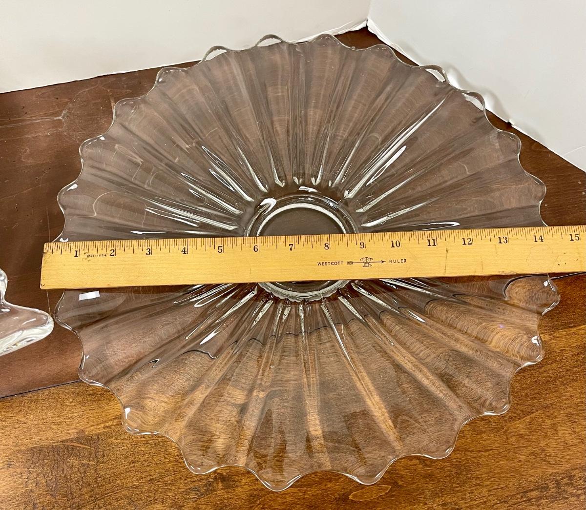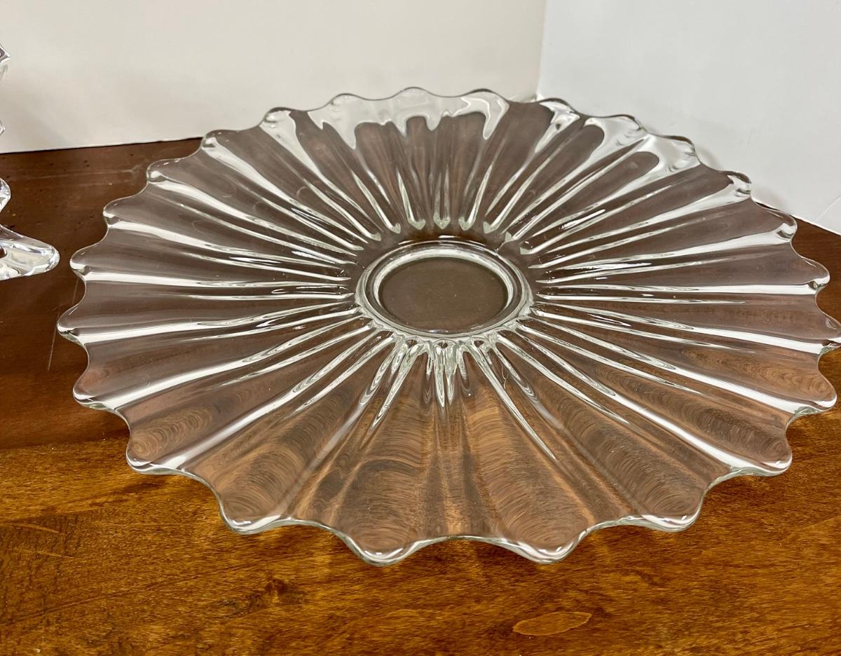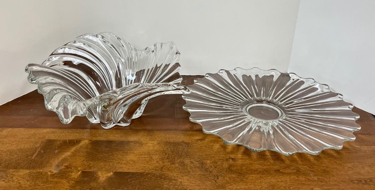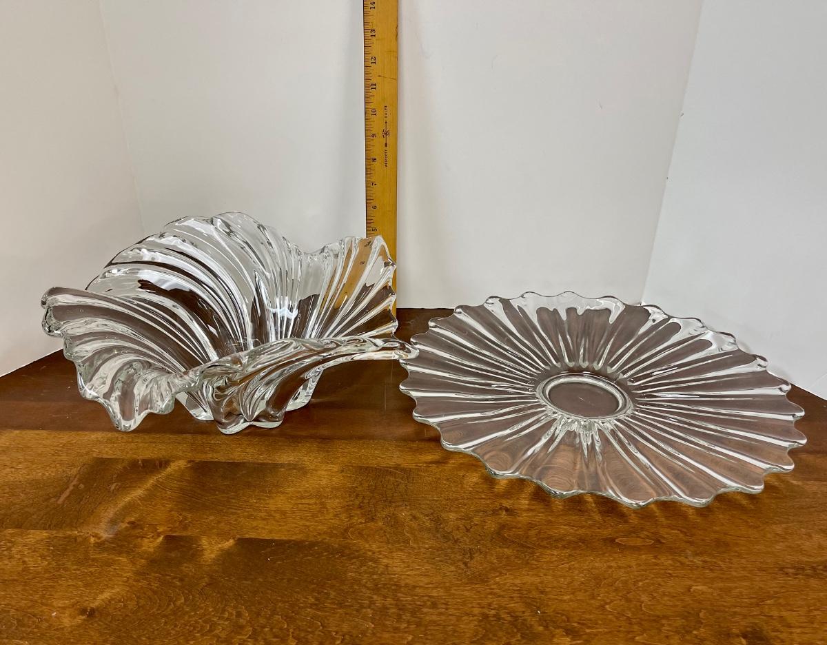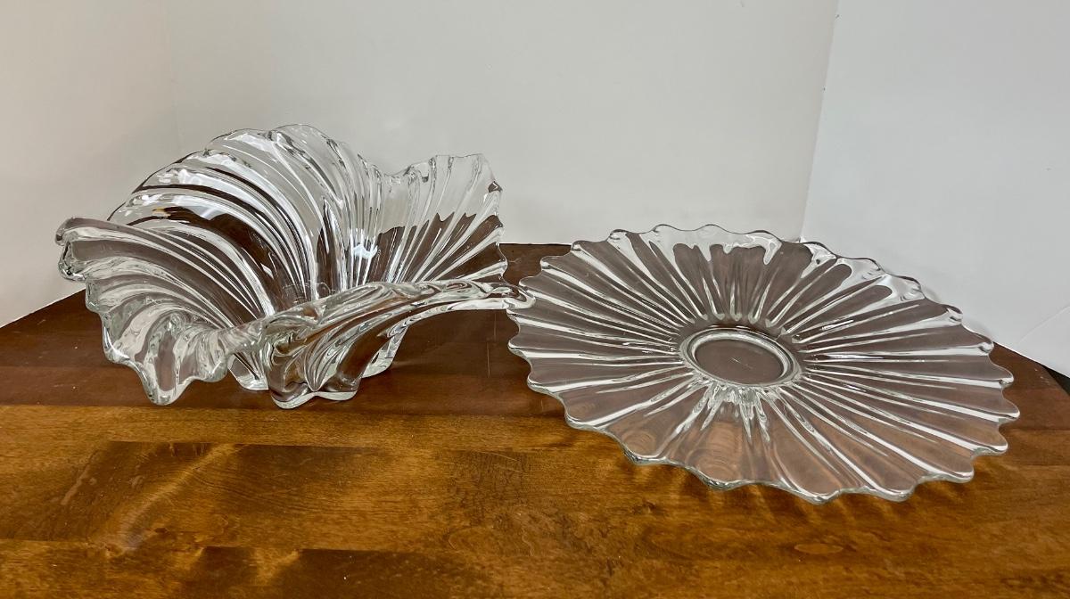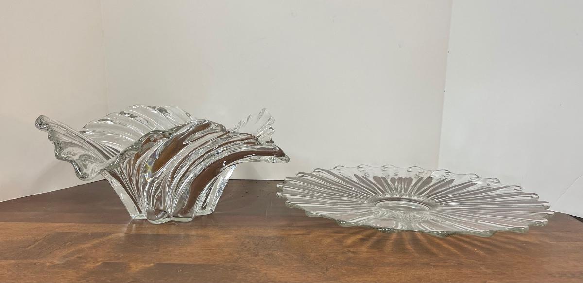 Swirled Heavy Crystal Glass Serving Pieces Platter Plate Bowl. In good condition. Display nice.