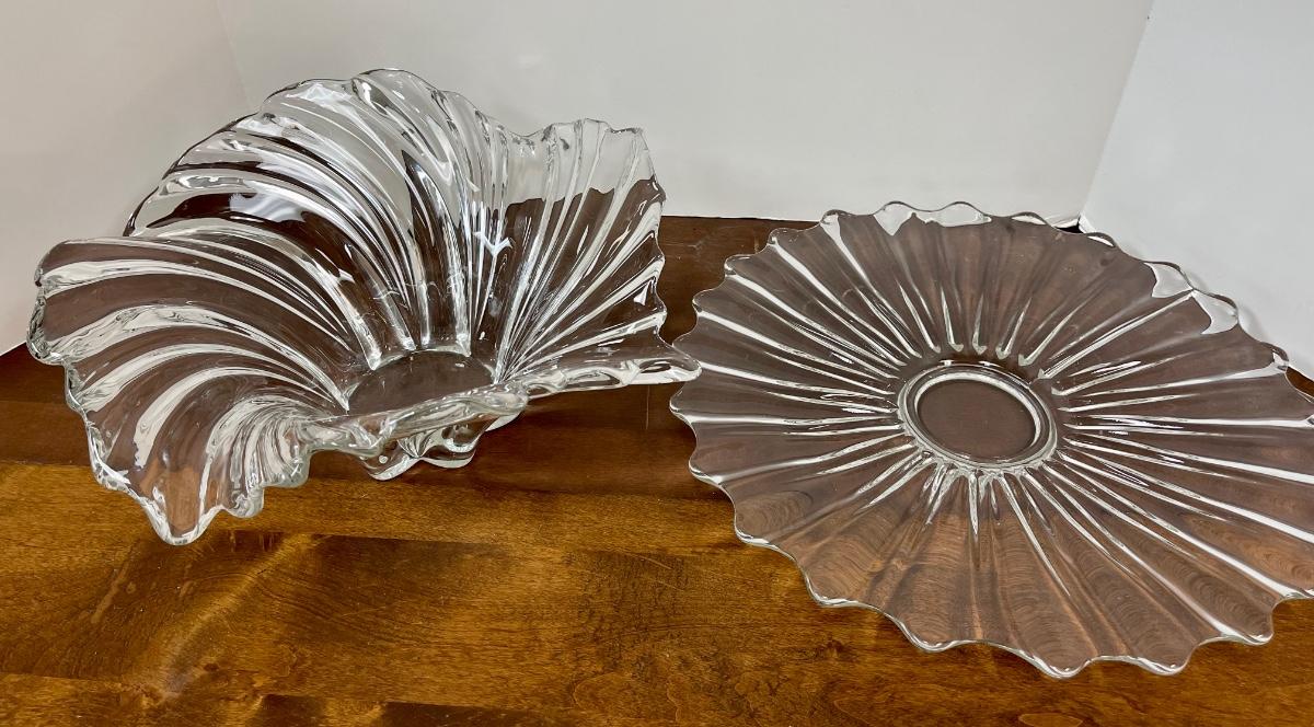 Mikasa Swirled Heavy Crystal Glass Serving Pieces Platter Plate Bowl