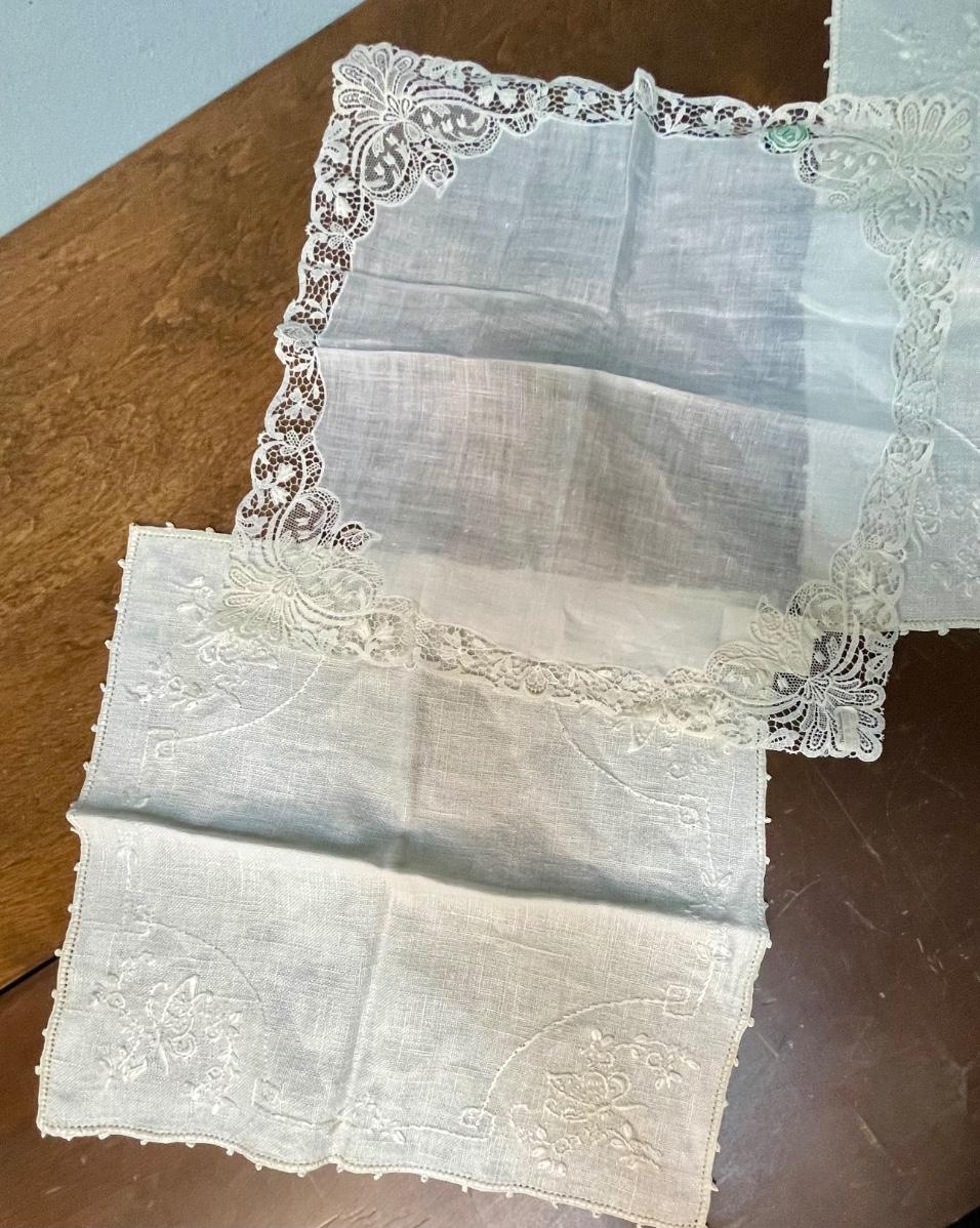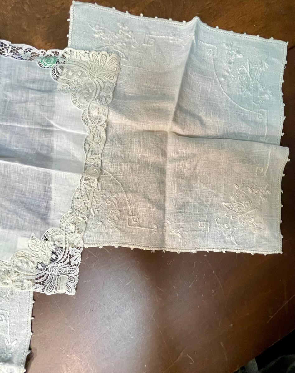 Vintage Linen Lot 4 - 3 pieces, square hankerchiefs