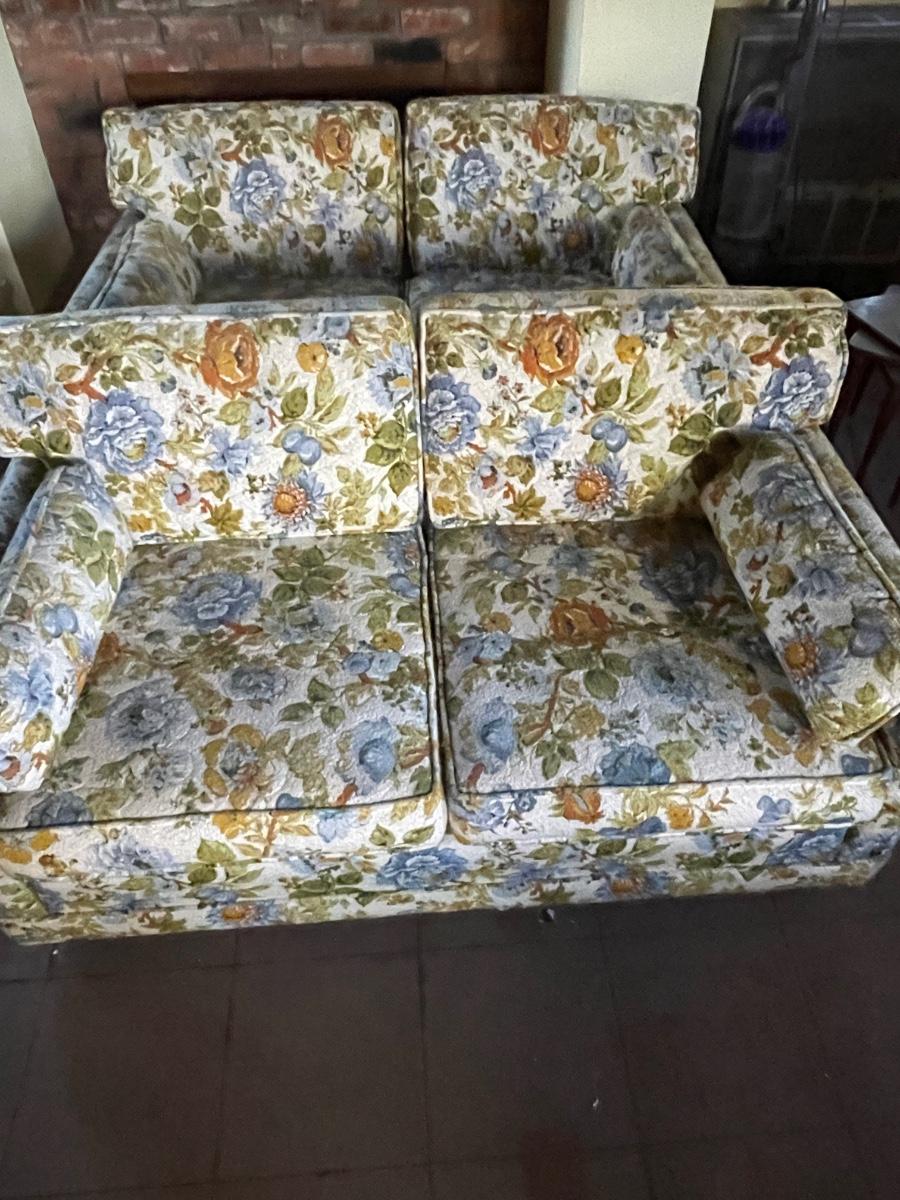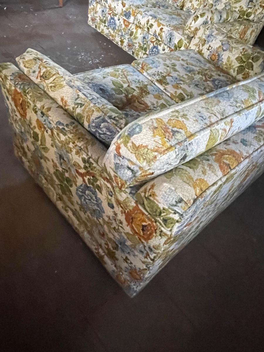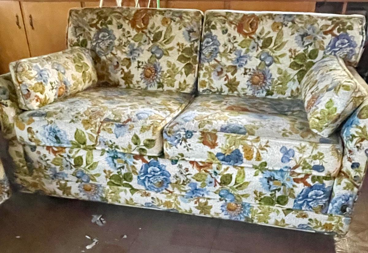 2 Mid Century Loveseats Blue, Green, and Gold Floral Pattern MCM - PICKUP OFFSITE IN BREA, CA