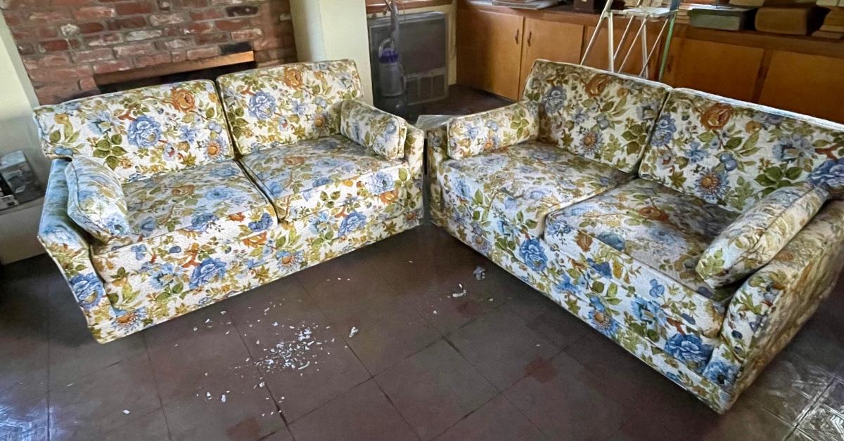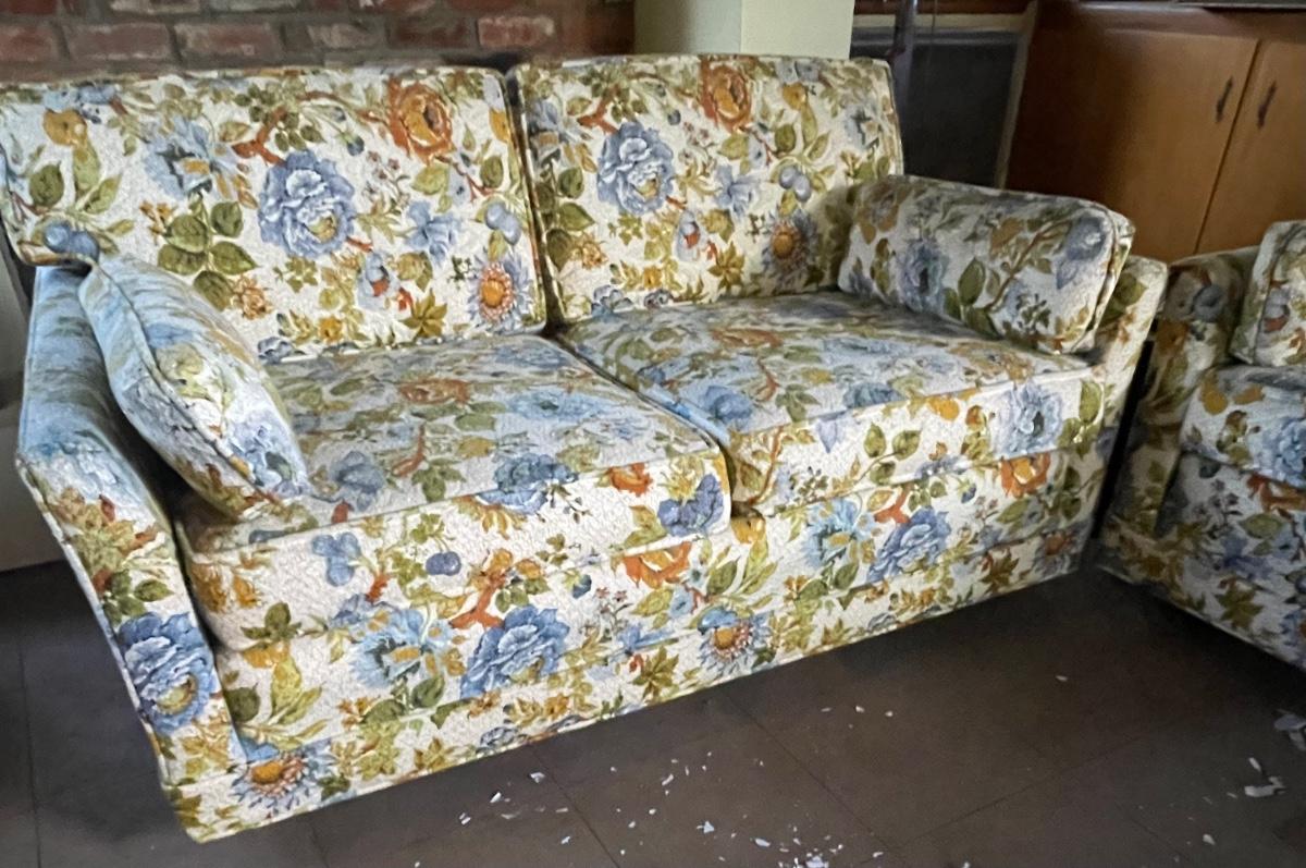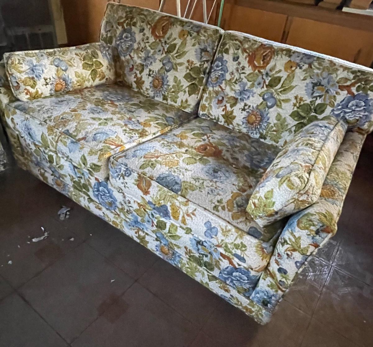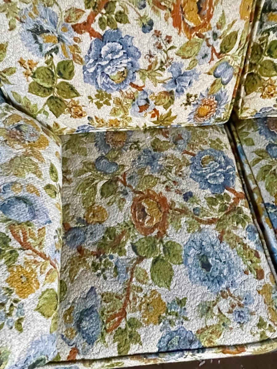2 Mid Century Loveseats Blue, Green, and Gold Floral Pattern MCM - PICKUP OFFSITE IN BREA, CA