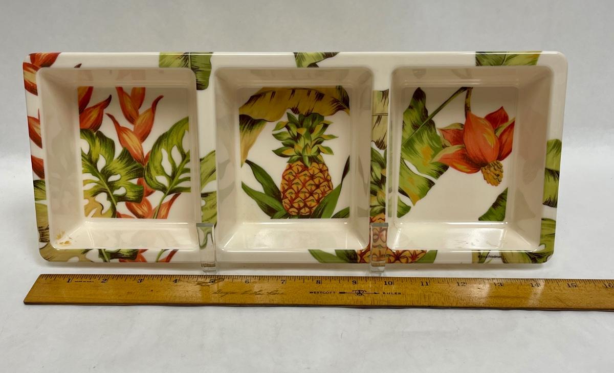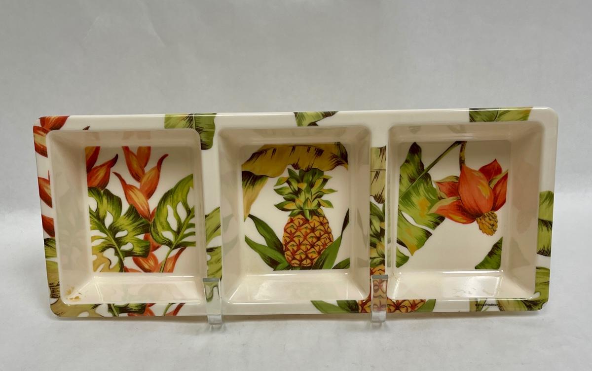 Erica Freedman Three Part Melamine Dish tropical Pineapple Design