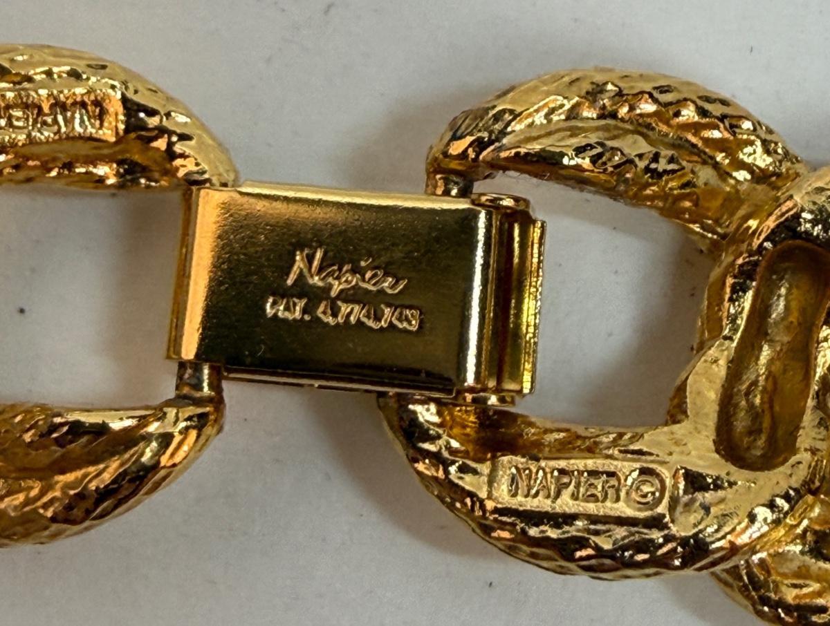 vintage Napier gold-tone textured double link chain choker necklace