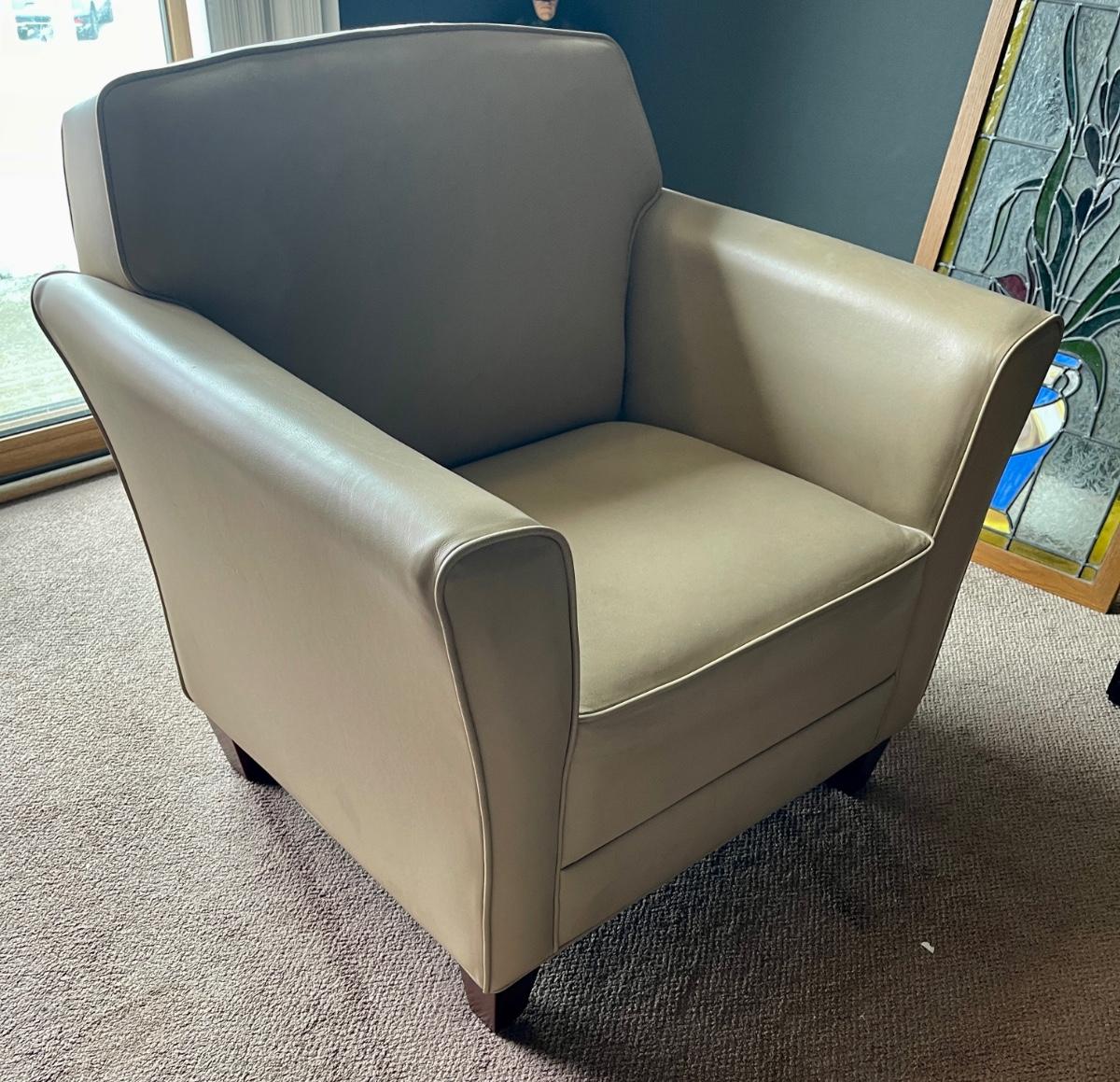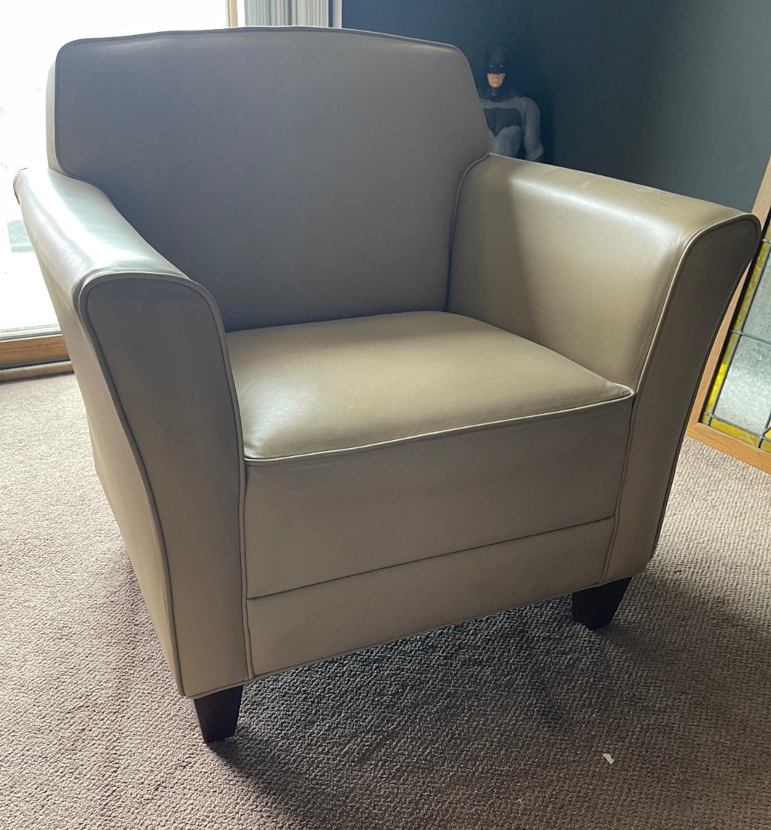 Beige or light tan color goes with any decor and color. Measures approx. 33" wide, 27" deep and 30" high. Good condition.