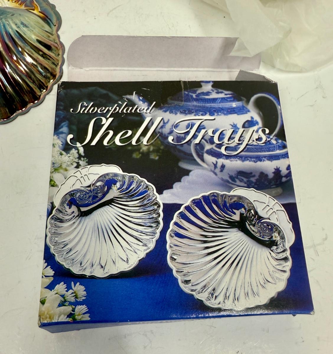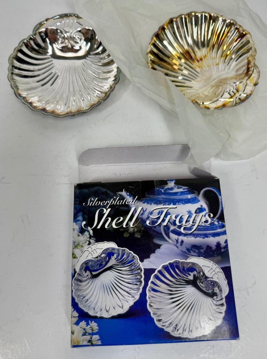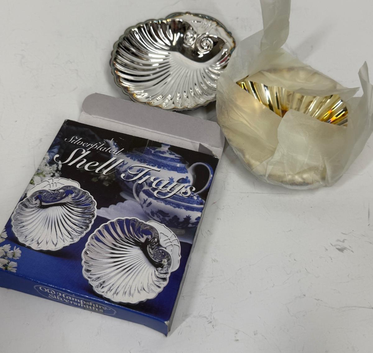 Silver Plated Shell Trays by Old Hampshire Silversmiths Sett of 2 Original Box