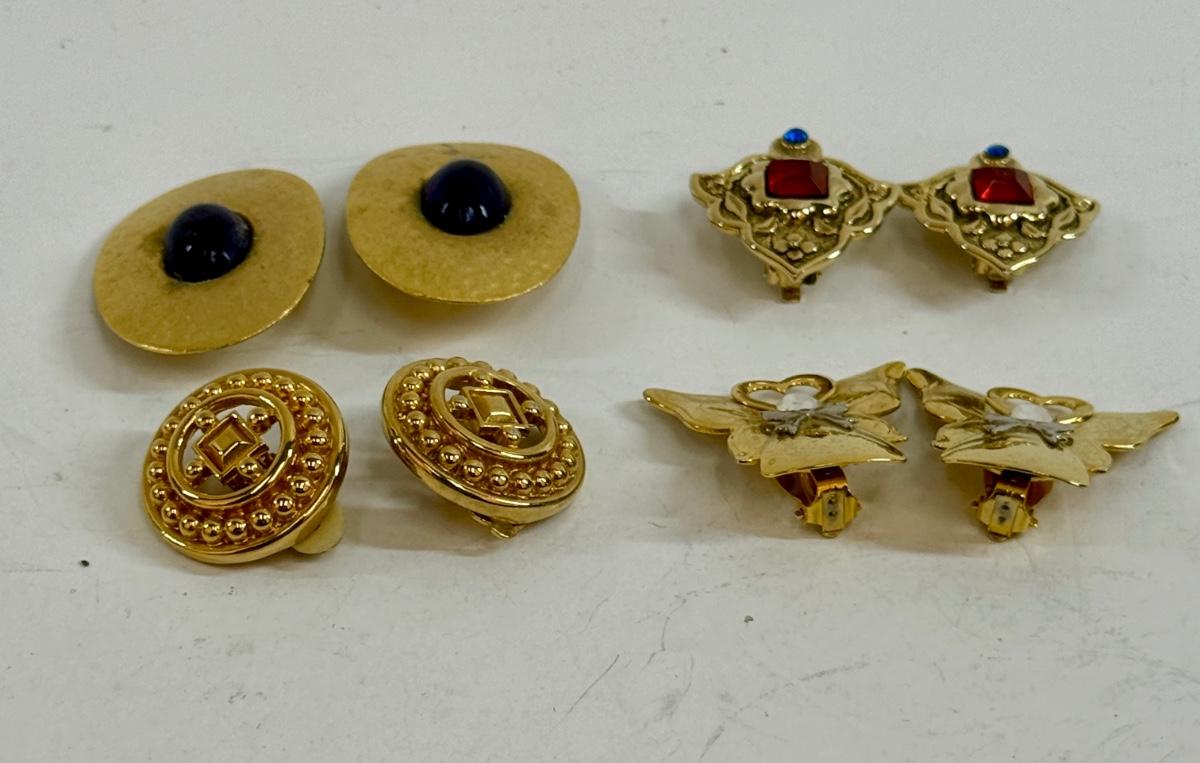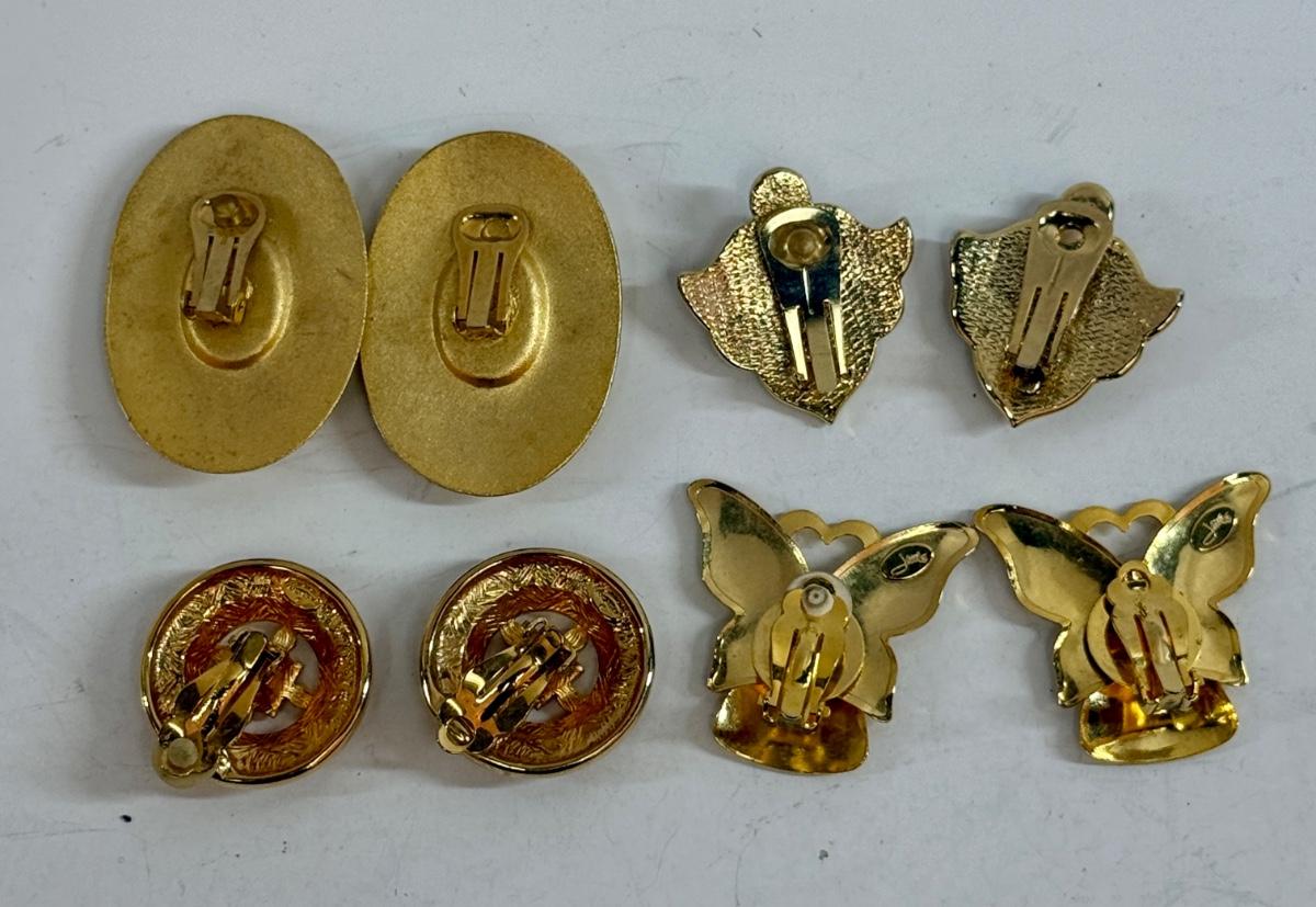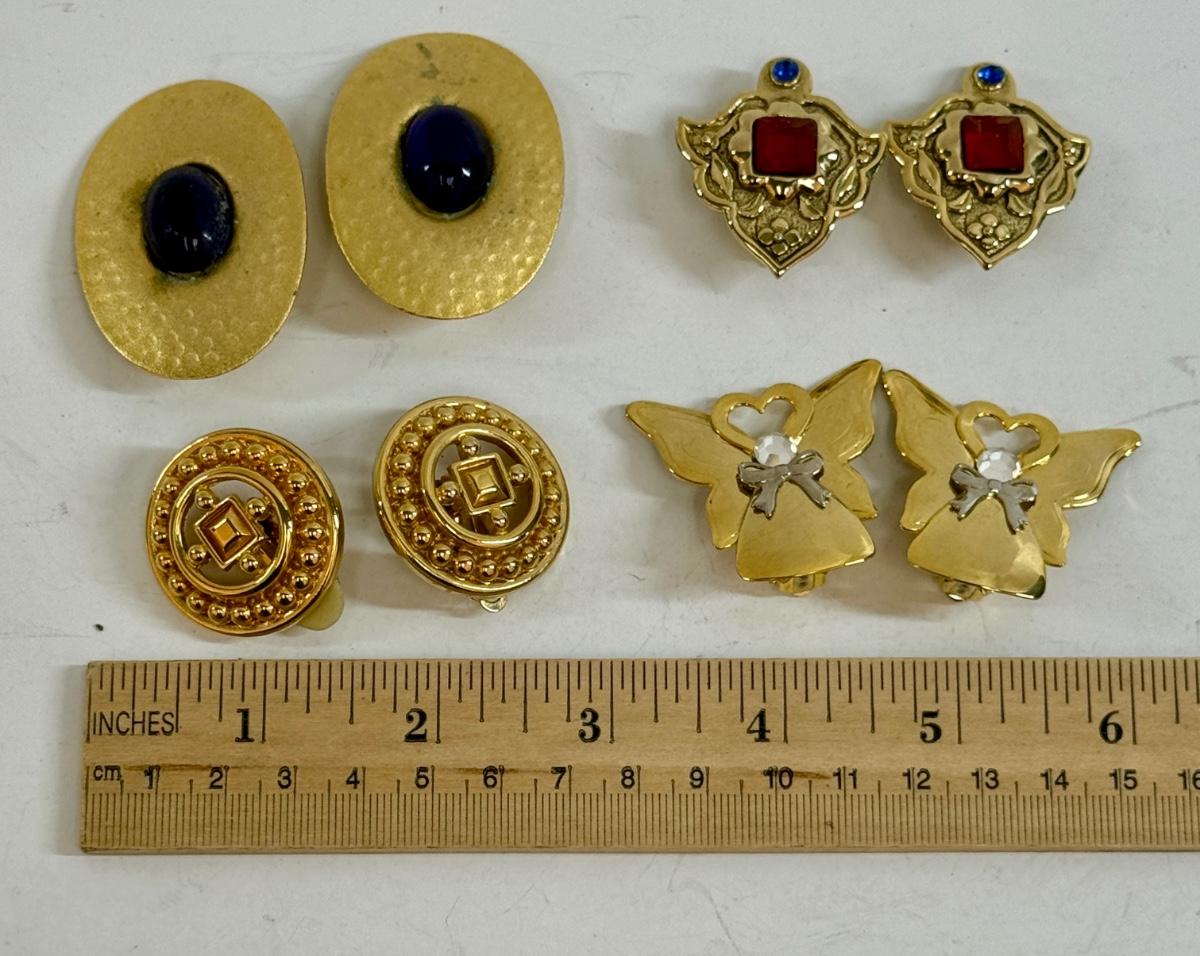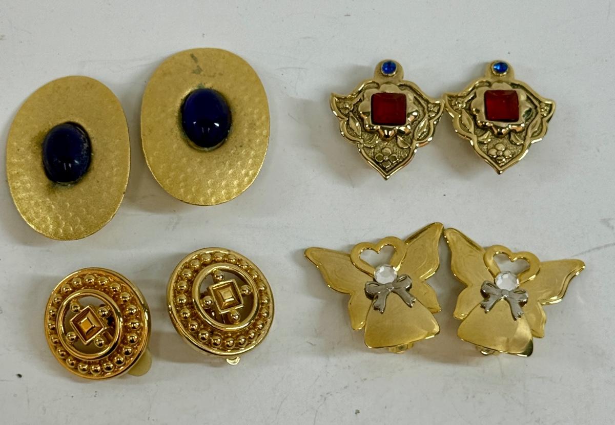 4 pair of gold-tone clip-on earrings. All in good condition.