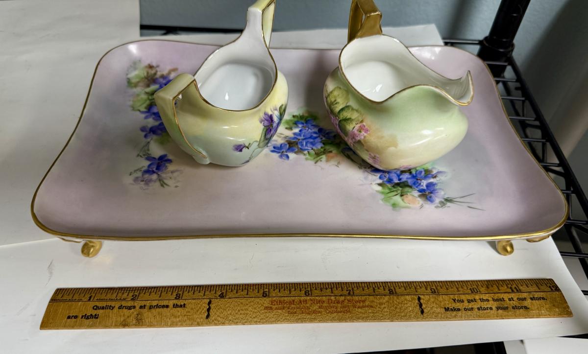 Vintage Hand-painted Porcelain Tray with Cream & Sugar - not all same maker
