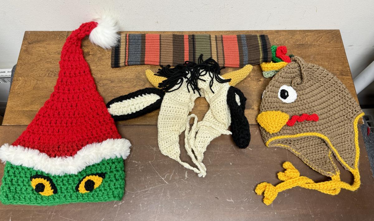 3 Winter Hats and a tube for something? - Grinch & Chicken, etc