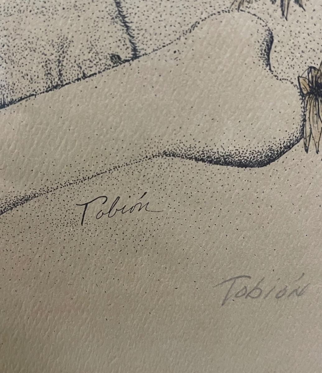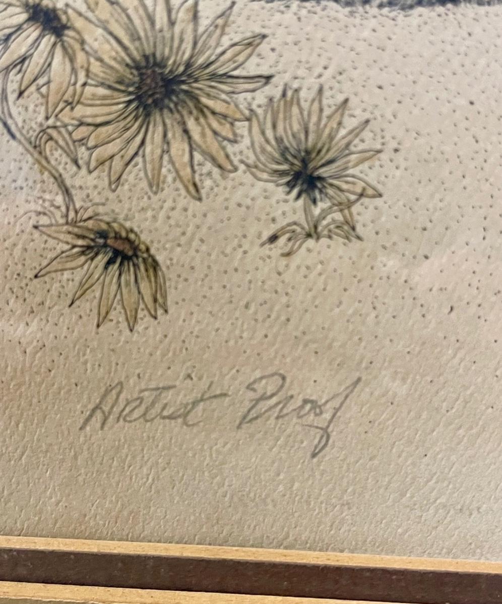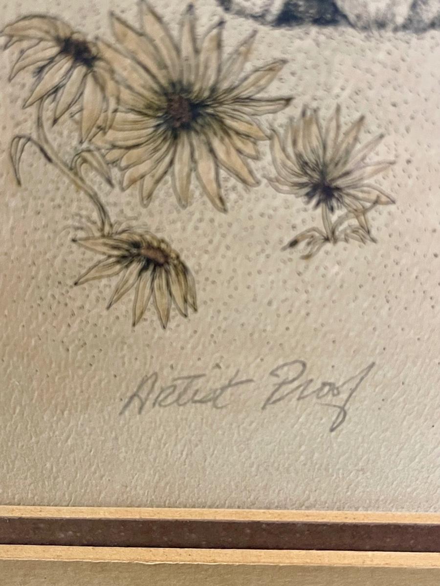 Artist Proof Framed Sketch of Basset Hound Puppy sitting in amongst daisies signed Tobion