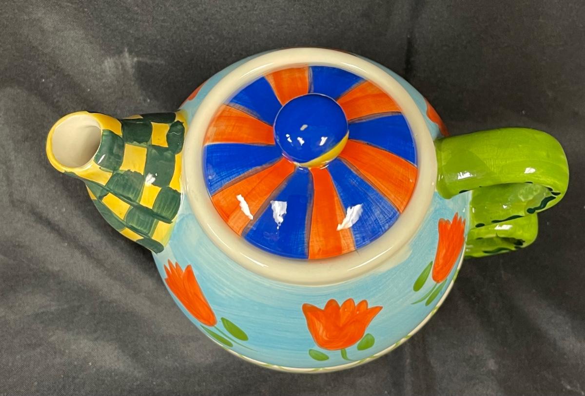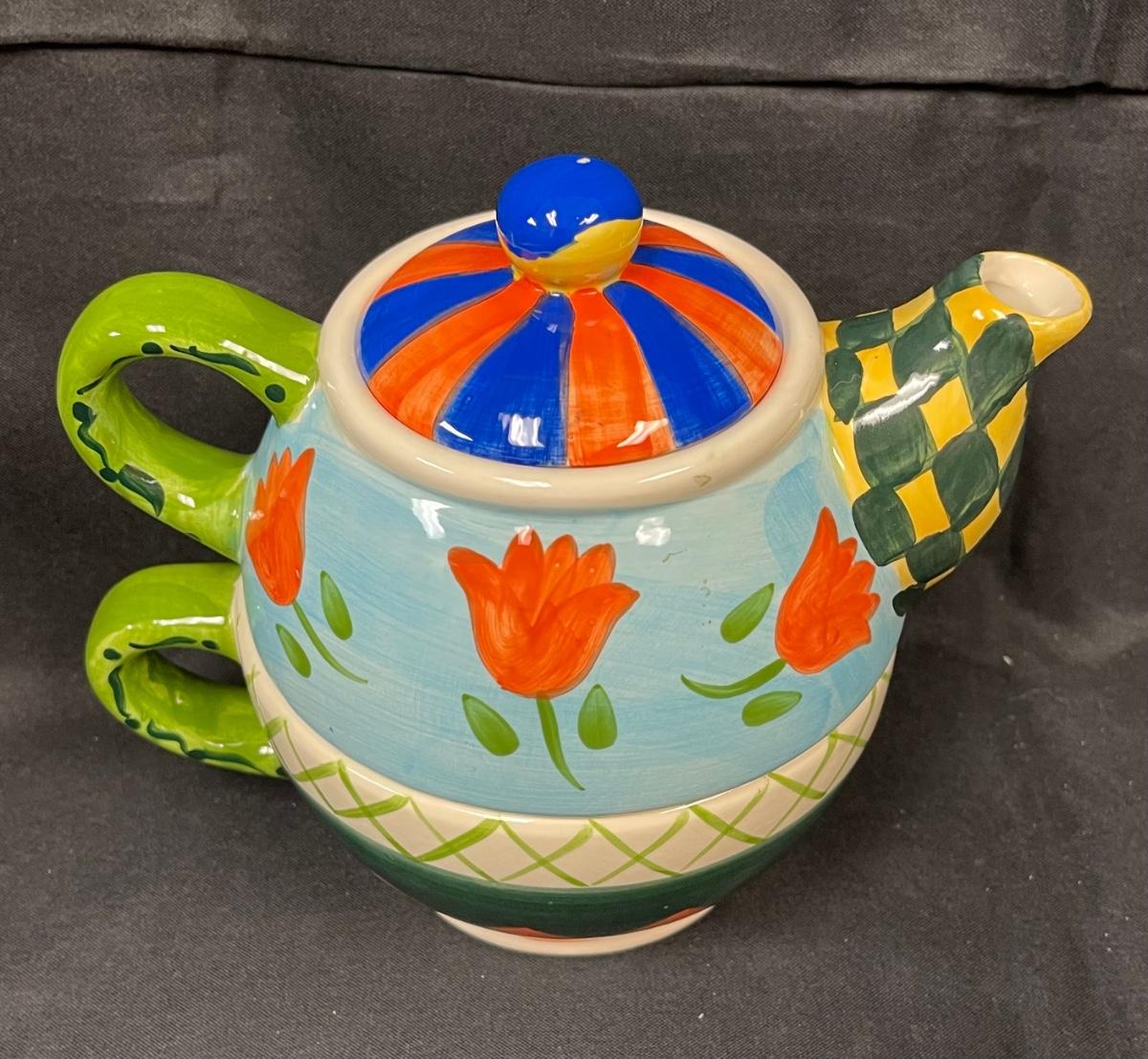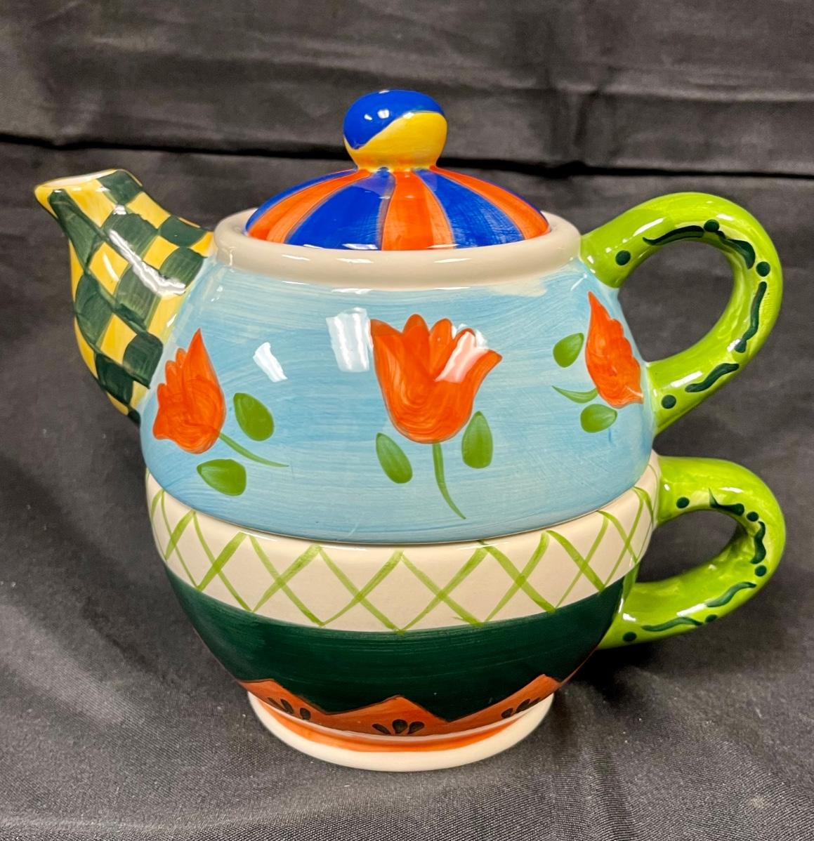 Colorful Stacked Tea for One Personal Single Teapot & Teacup. In good condition, would display nicely.