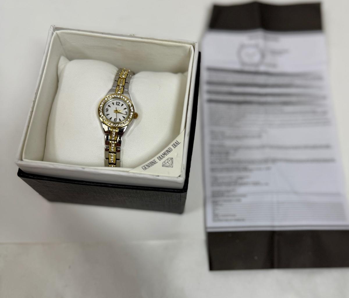 Ladies Fashion Watch - Silver and Gold Tone with Genuine Diamond Dial