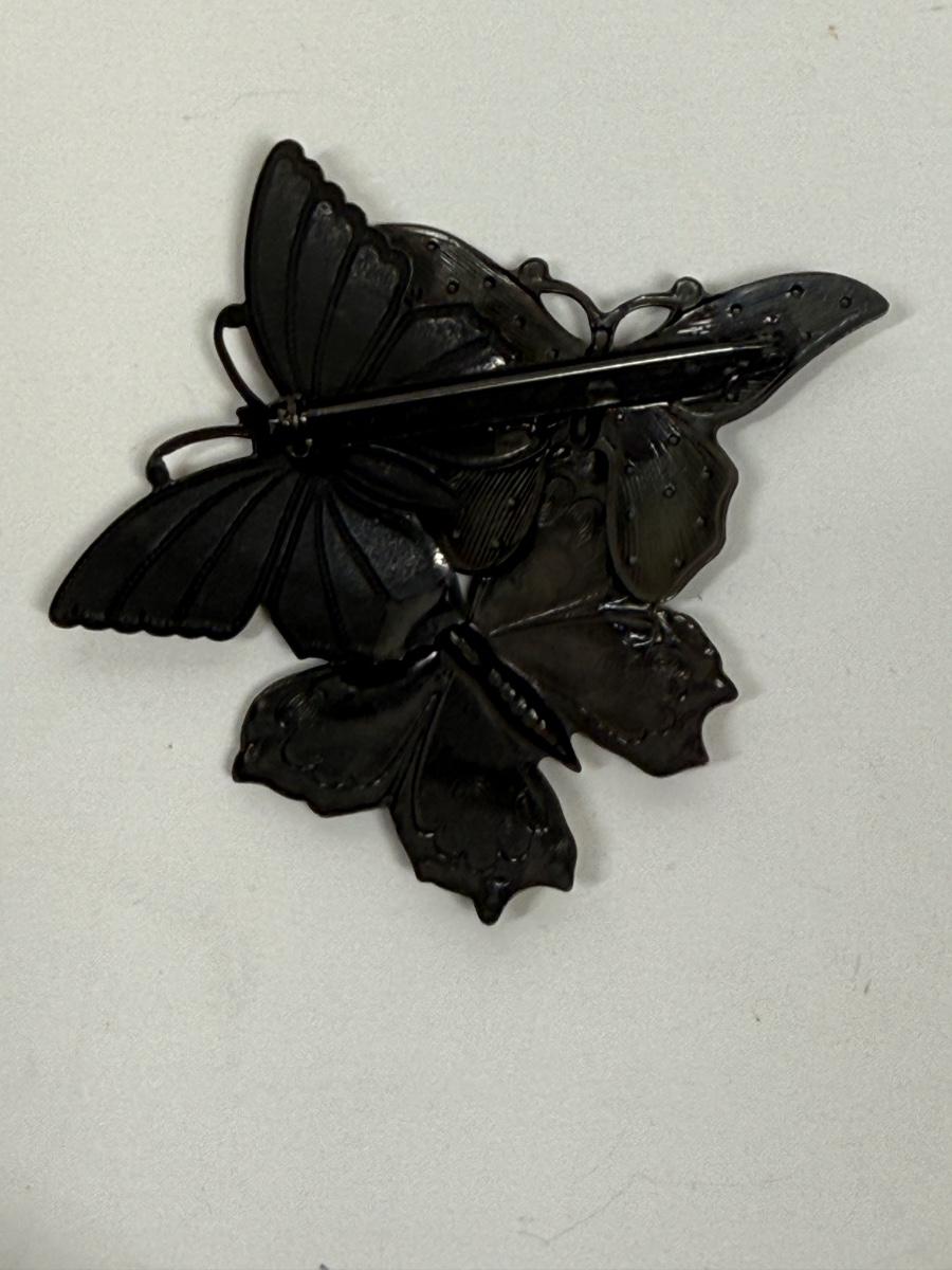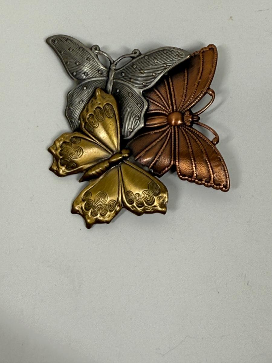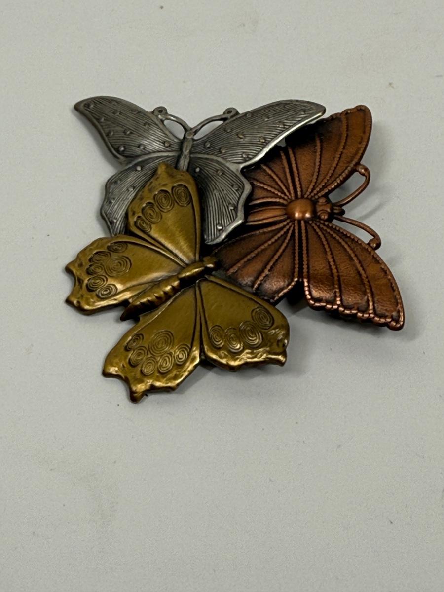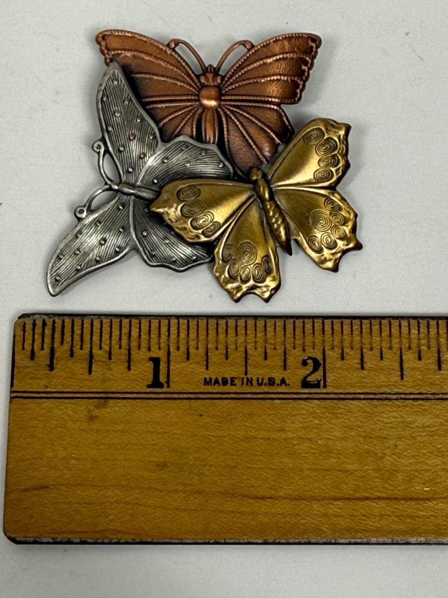 Vintage Triple Butterfly mixed metal colored Brooch or Pin