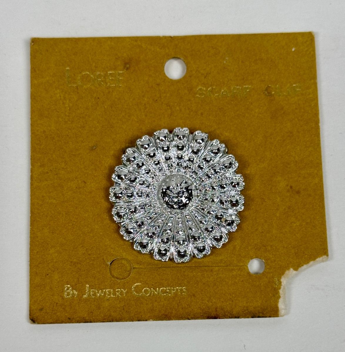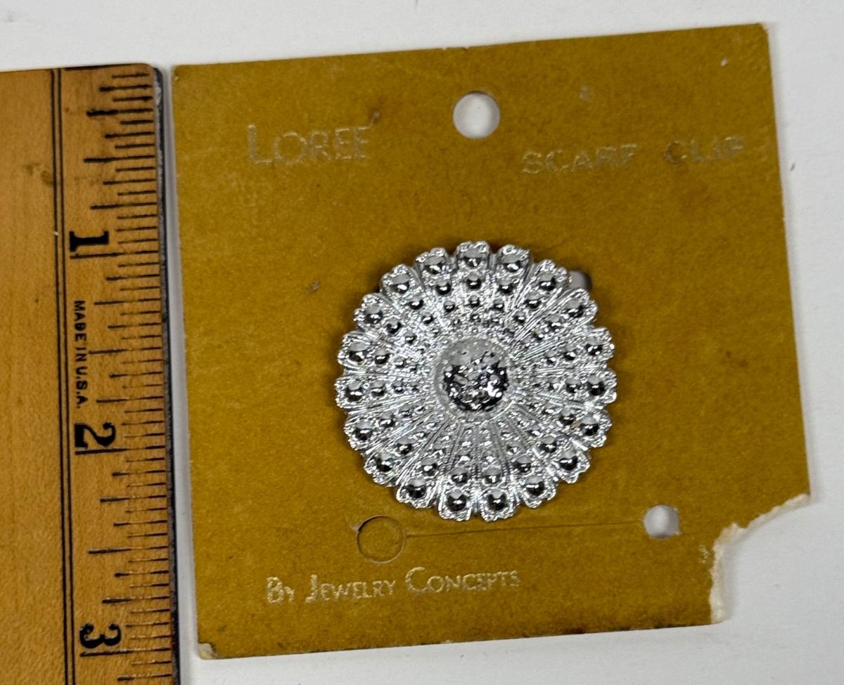 Vintage scarf clip by Jewelry creations. Still on original JC Penney card. Good condition, approx. 1.25" across.