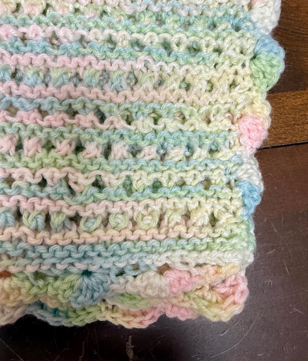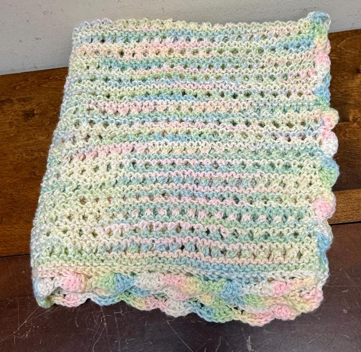 Crocheted Baby Afghan Blanket or Lap Blanket 30" square mixed pastel colors