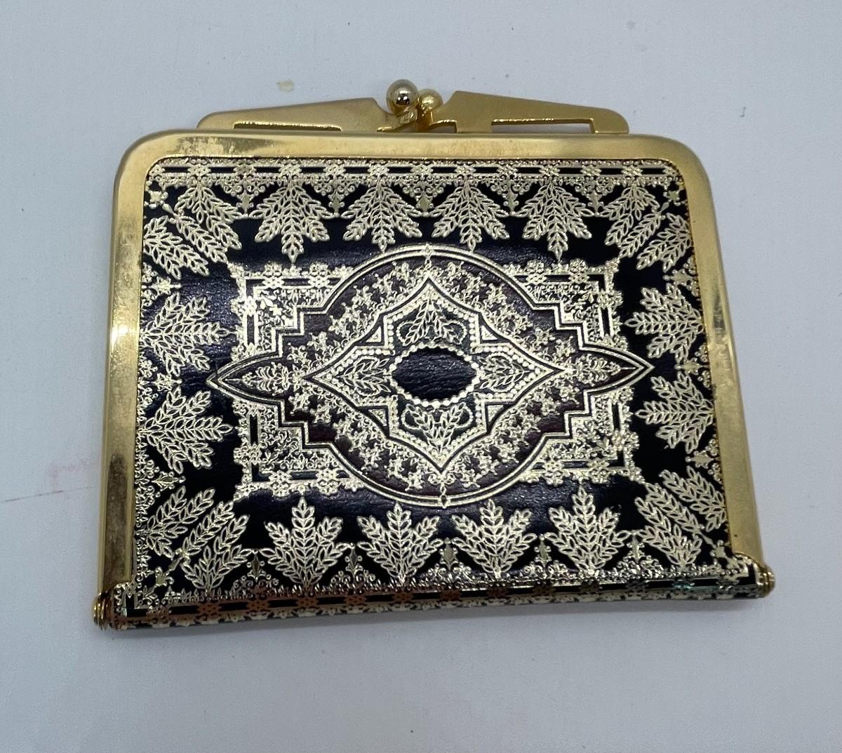 Vintage Luxury Leather women's Coin Purse Black & Gold