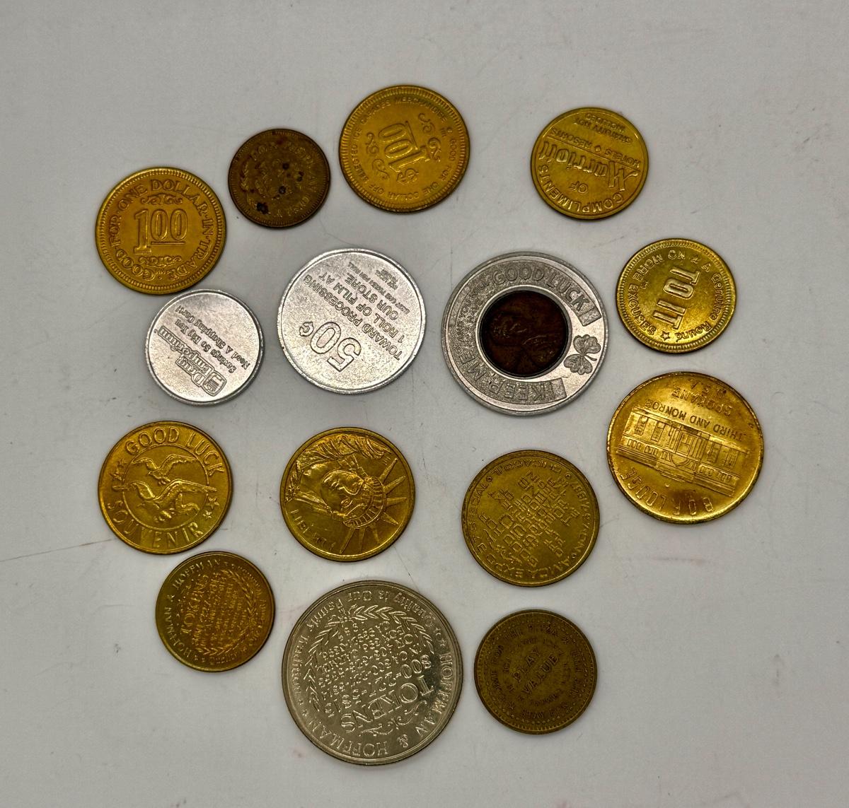 Includes tokens for arcade game play, shoe shine at a Marriot Hotel, Restaurant tokens, Ice capes, Film processing, and Good Luck Tokens. Most look to be in very good, near-new condition.