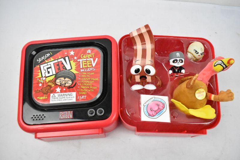 FGTEEV Season 1 - Incomplete: 1 Plush with Sound, 1 Mini-Figure, 1 Squishy Figure, 4 Stickers, 1 Big Figure, and 1 TV case