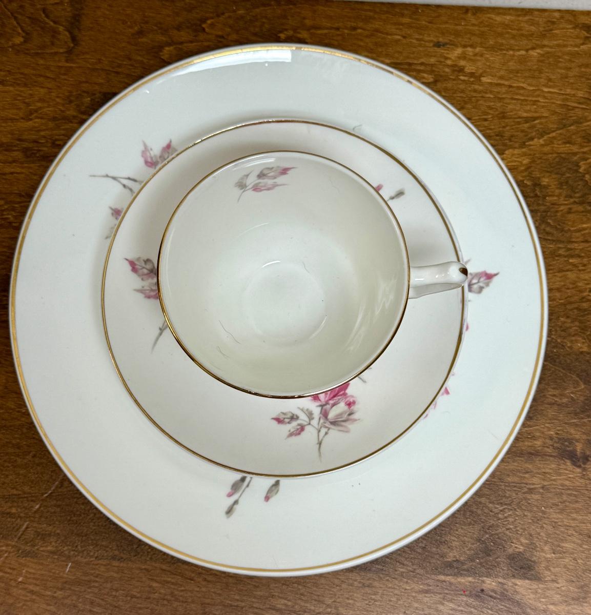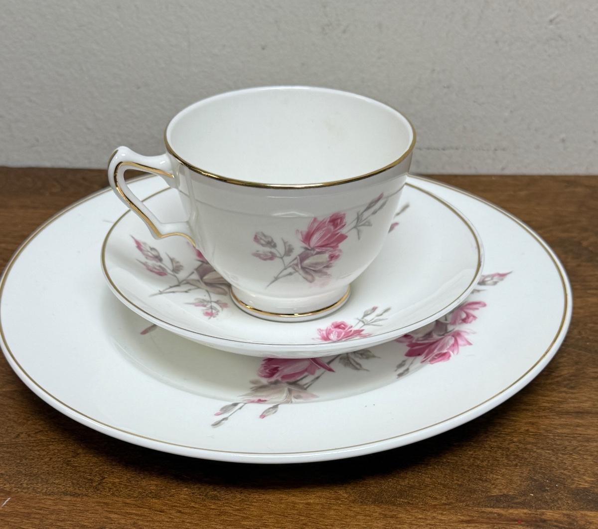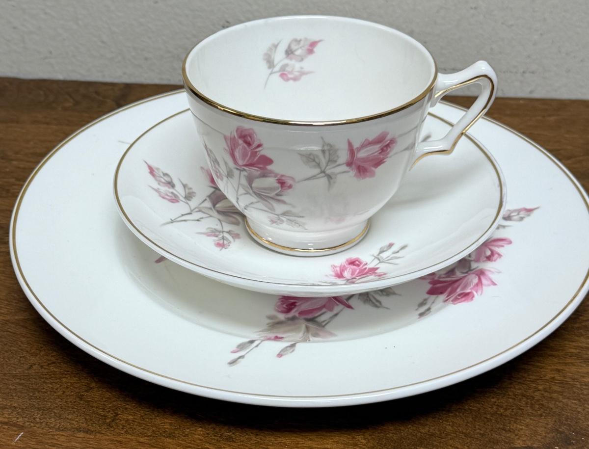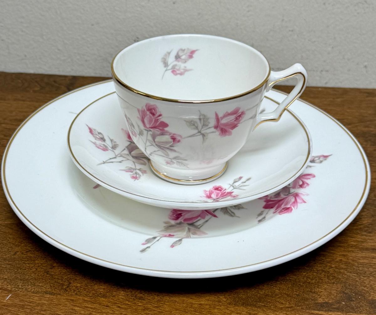 Vintage STAFFORSHIRE 3 pc Tea Set - small plate with teacup & saucer pink roses