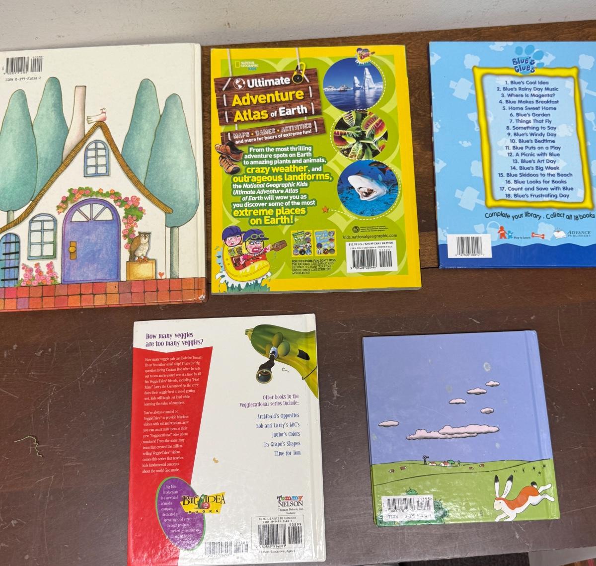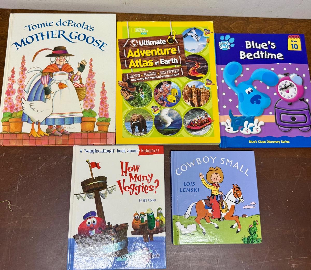 Children's Book Lot - Mother Goose, Adventure Atlas, Blue's Bedtime, How Many Vegies? Cowboy Small