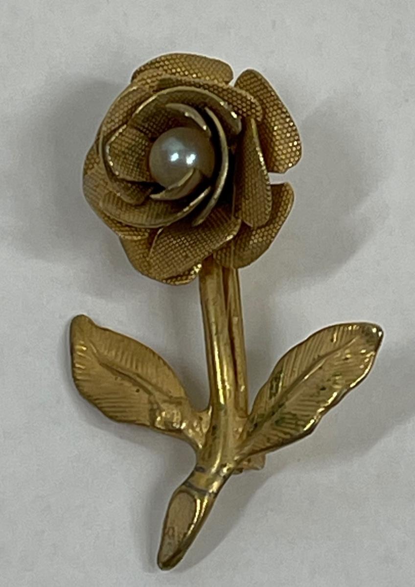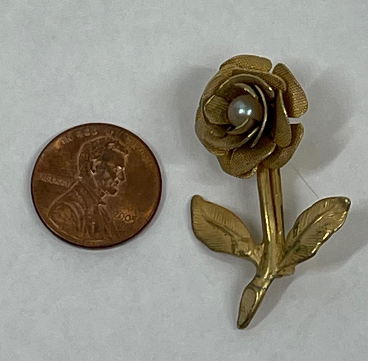 Small Gold Tone Rose with white pearl center