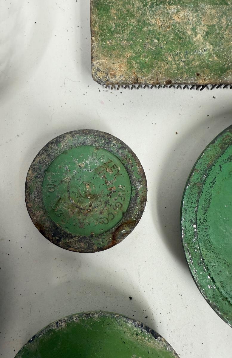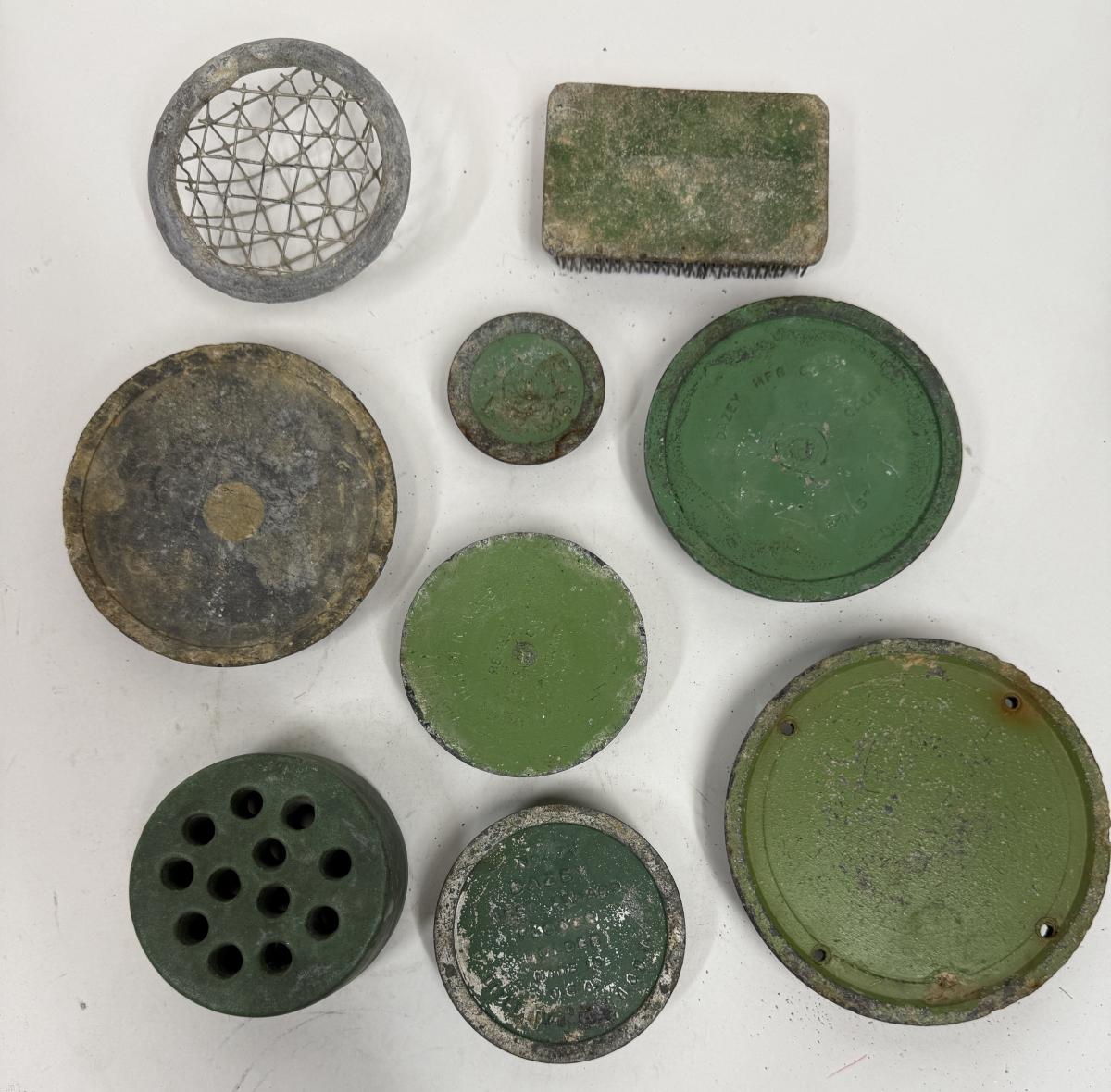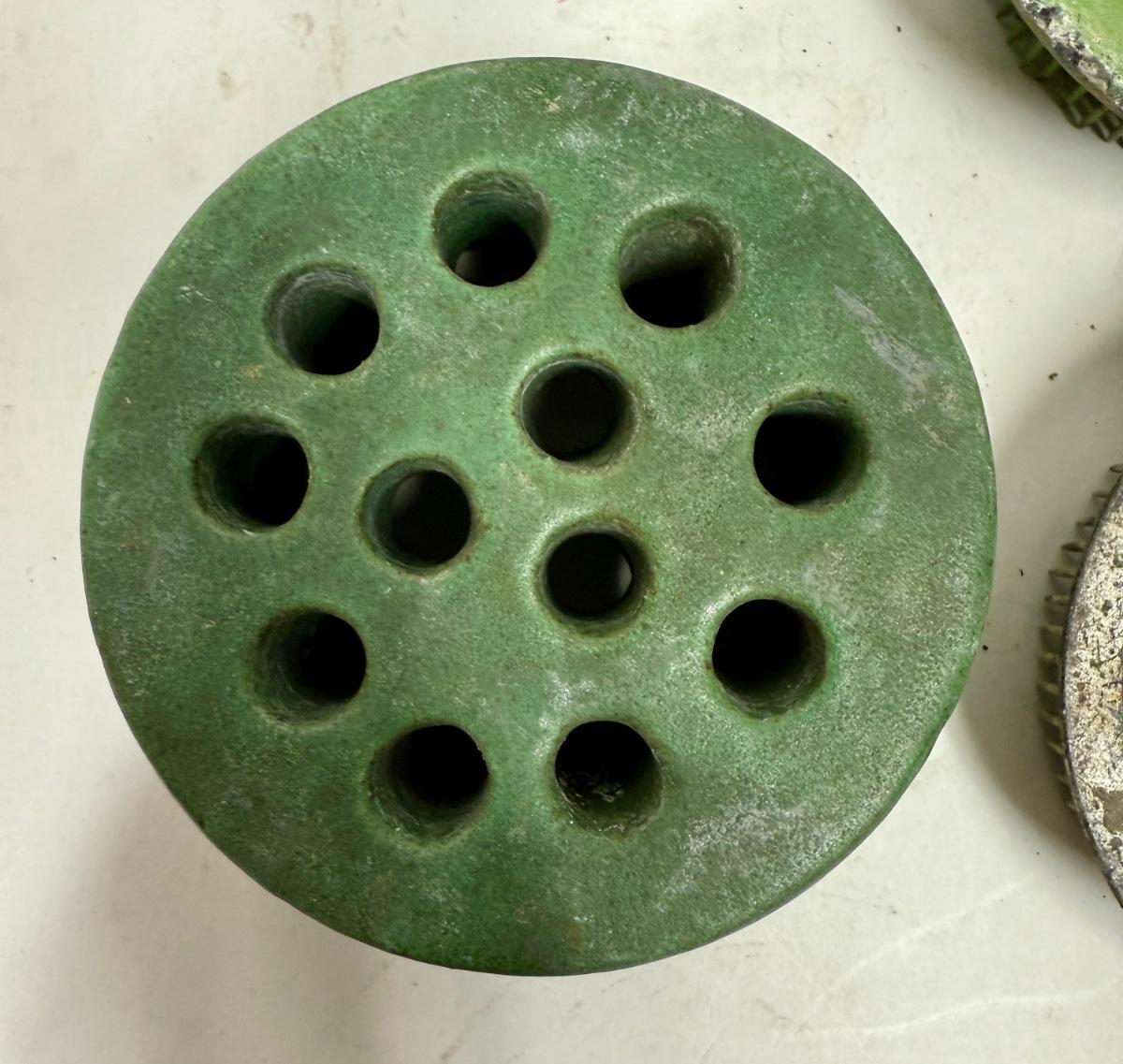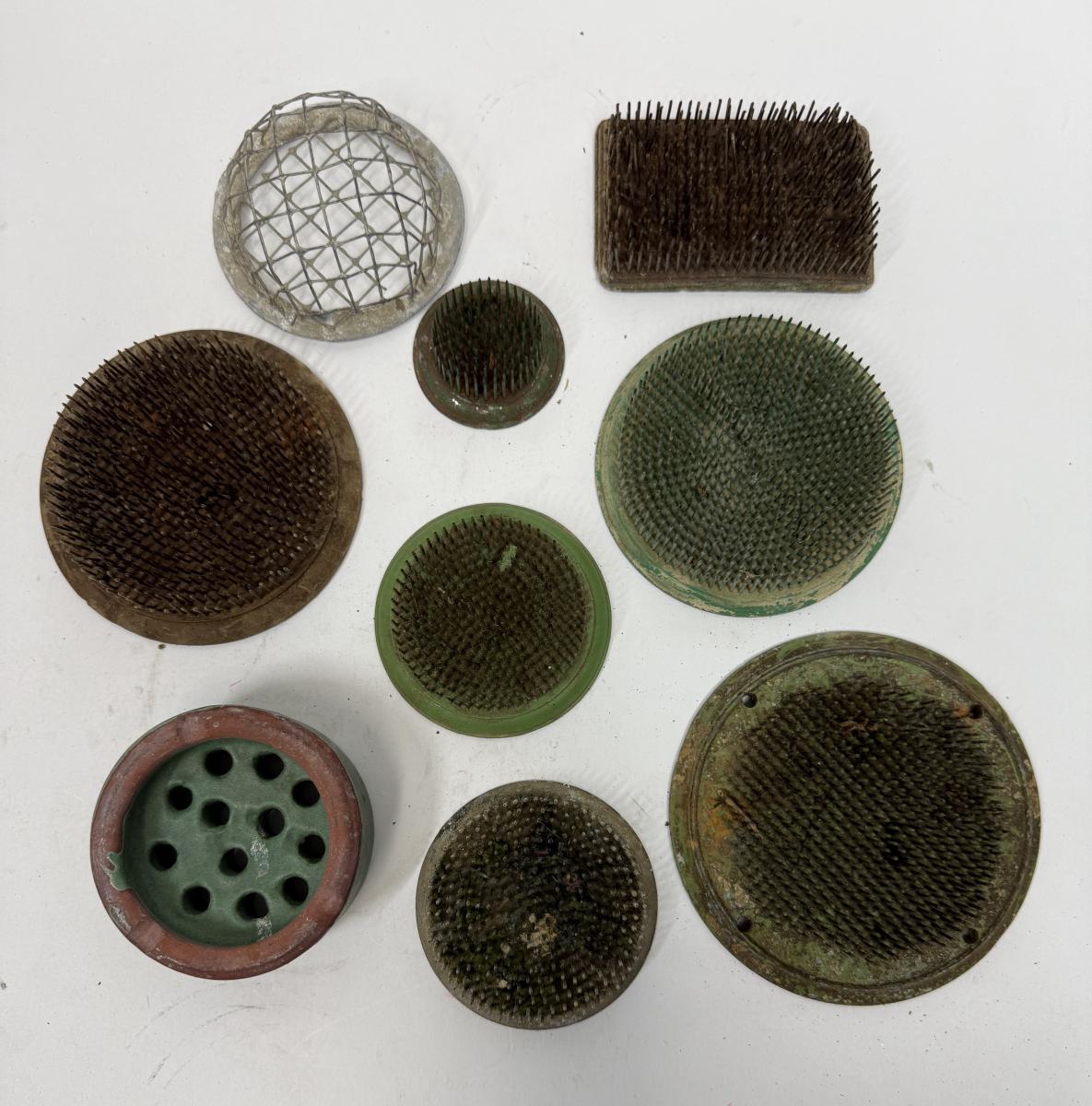 Flower Frog 9 pc Lot - green metal, ceramic, round, rectangular, etc