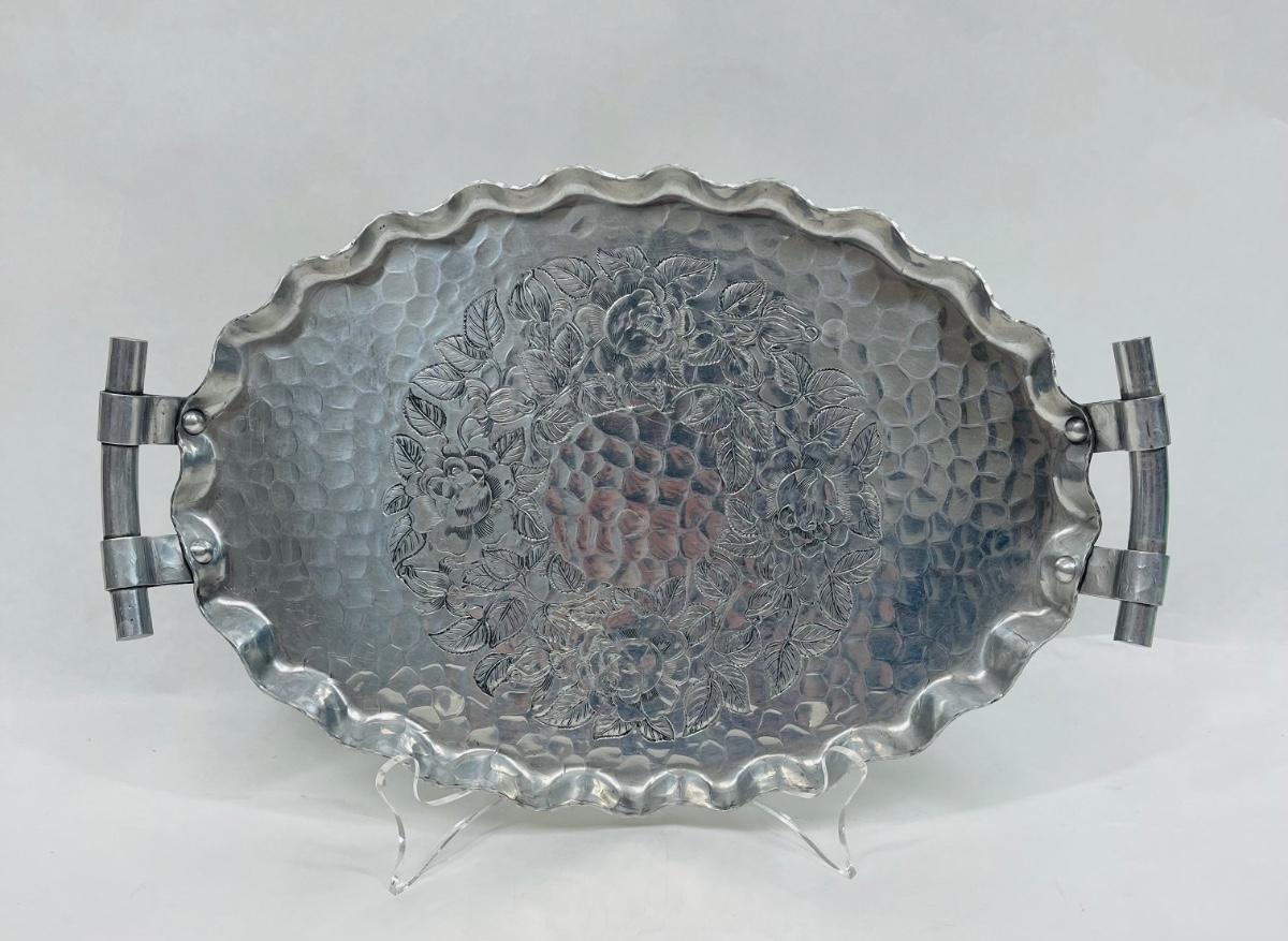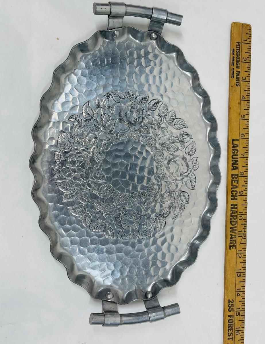 World Hand Forged Hammered Aluminum Oval Platter with Handles