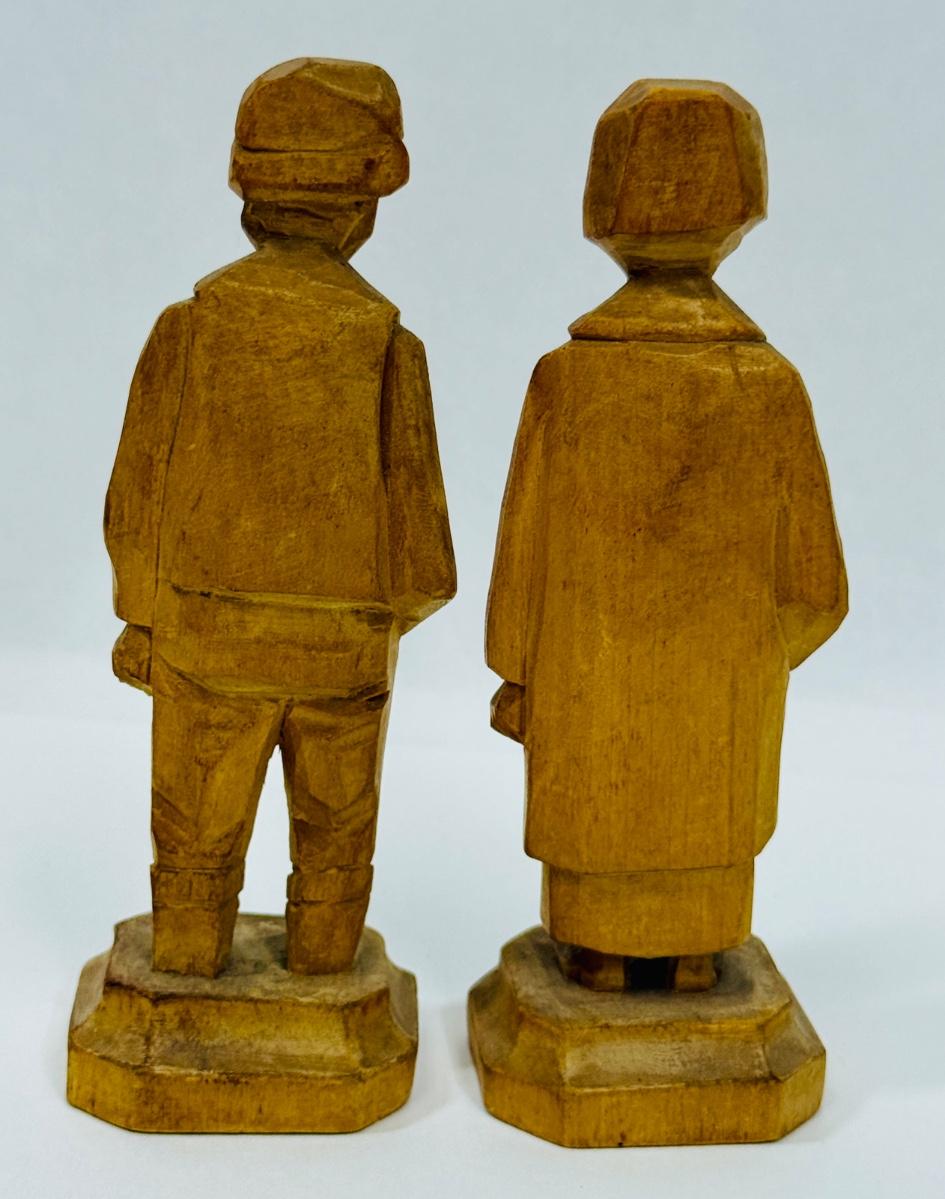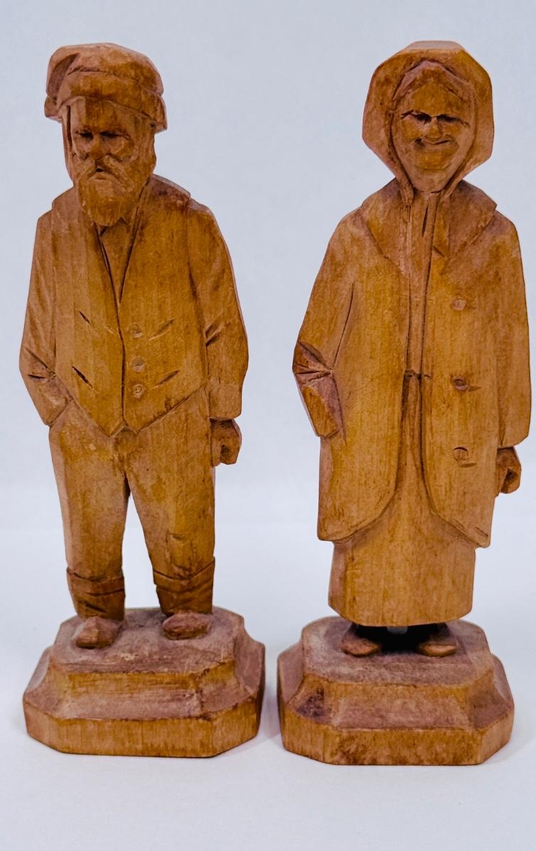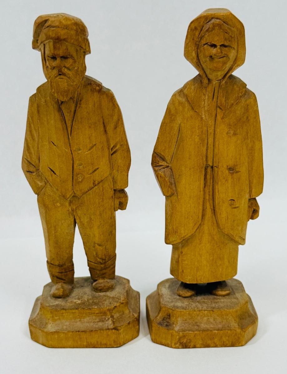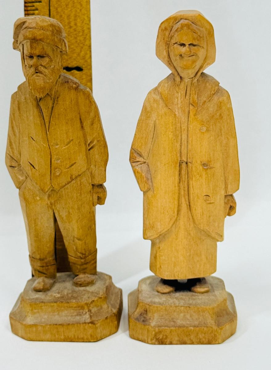 Lot of 2 Carved French Canadian Wood Figurines Man & Woman