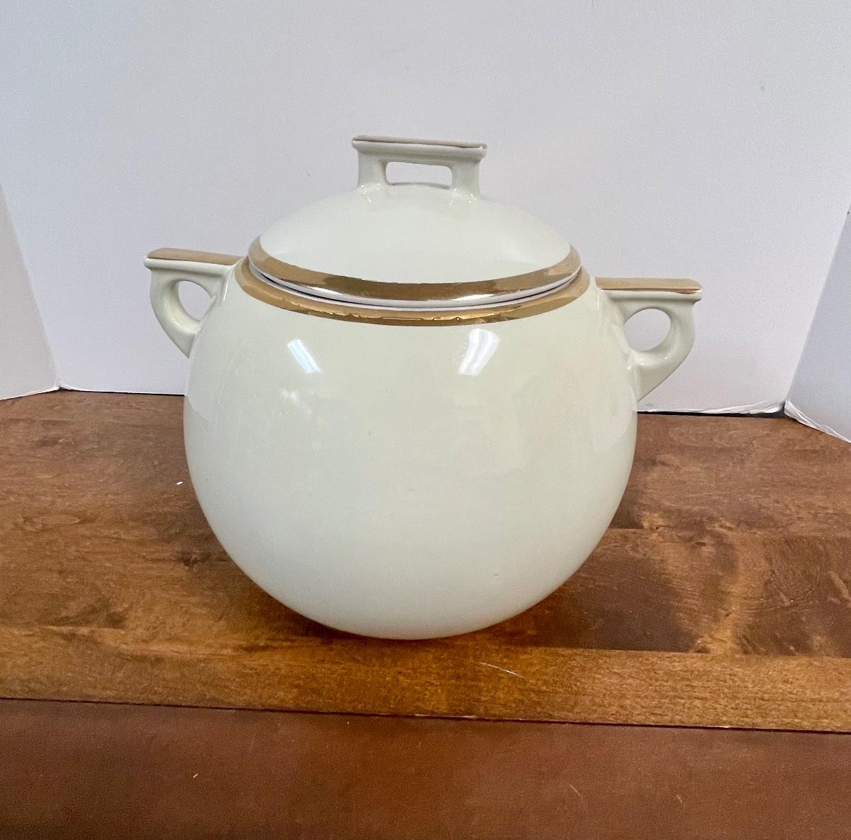 Vintage White and Gold Tom & Jerry Ceramic Bubble Lidded Punch Bowl with Cups. In good vintage condition. Some light wear in the gold accent from age and use but no chips noticed.