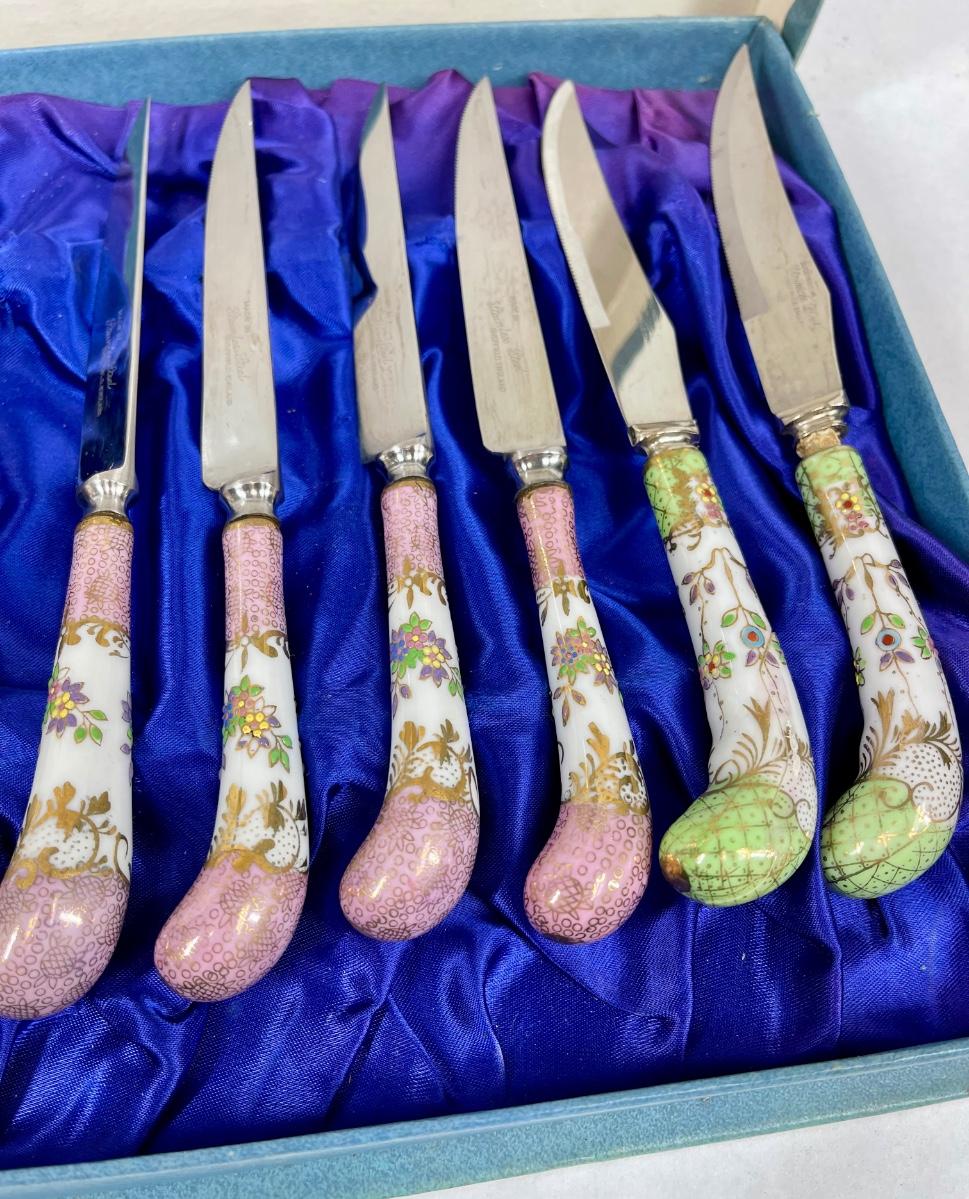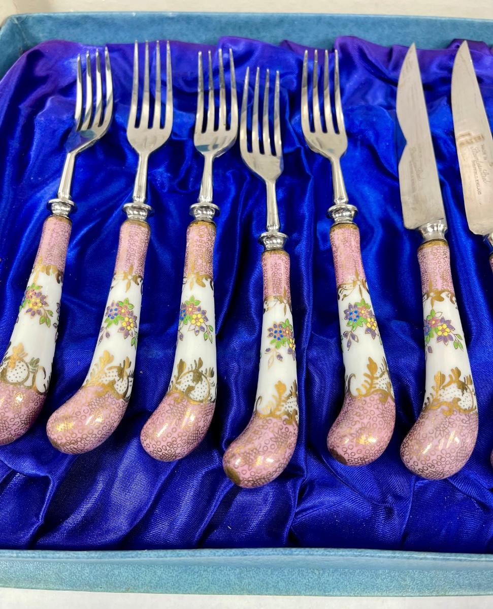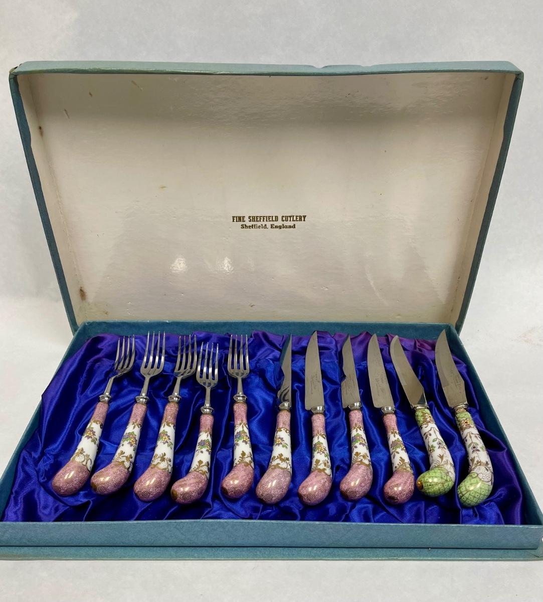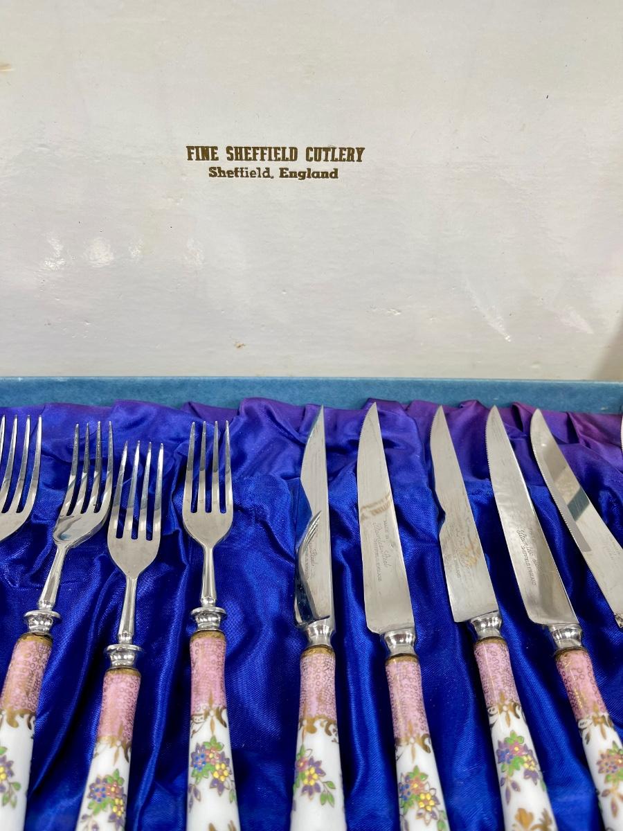 Sheffield Cutlery from Sheffield England Porcelain Handles floral pattern 11 pcs