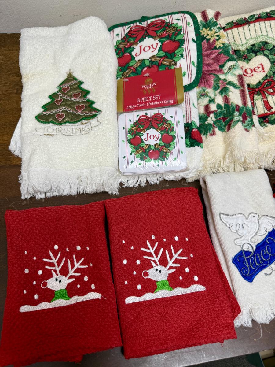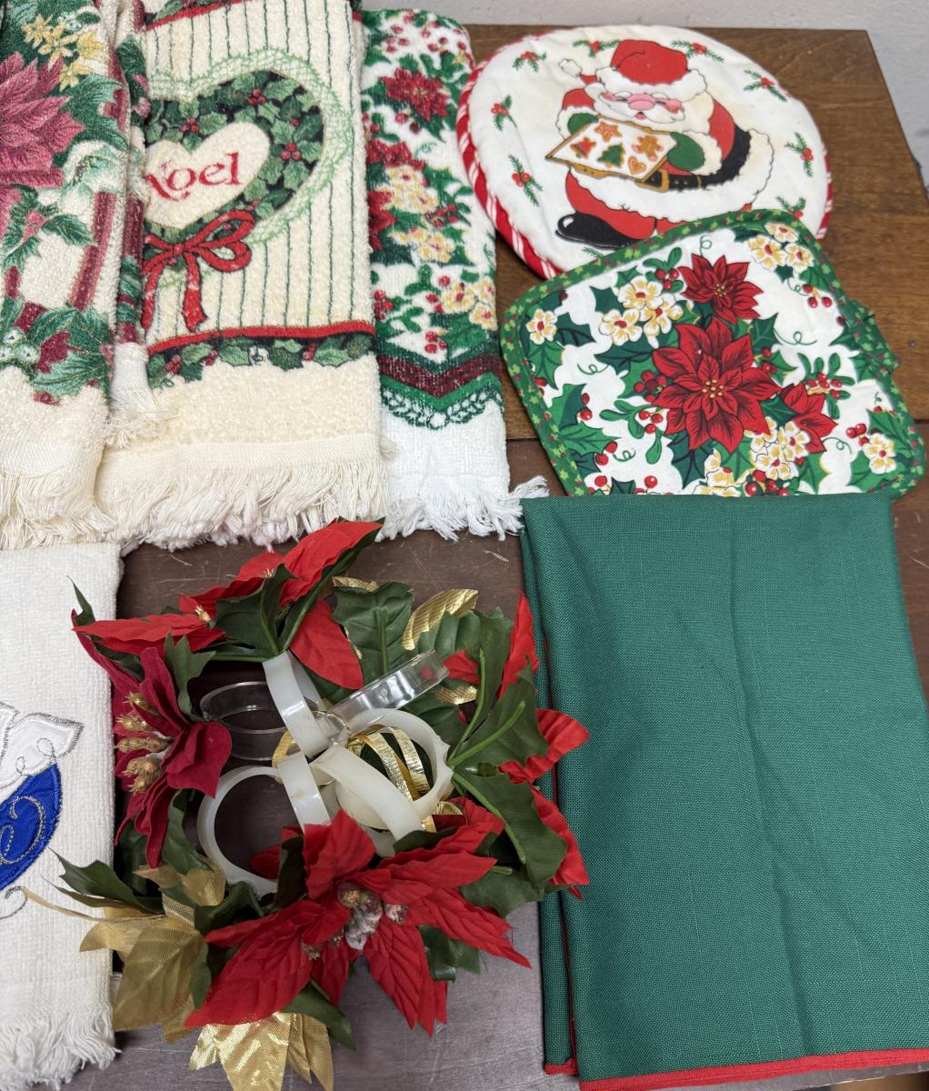 Christmas Lot - Dish Towels, Pot Holders, Napkin Rings, Guest Towels