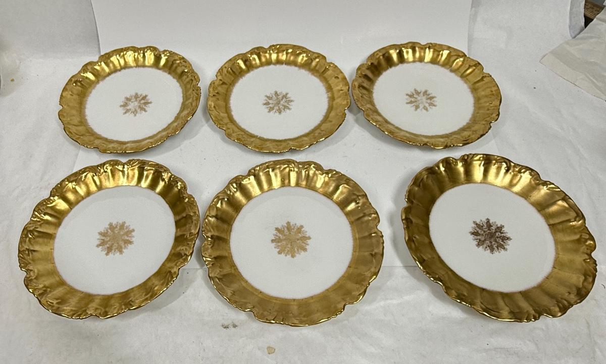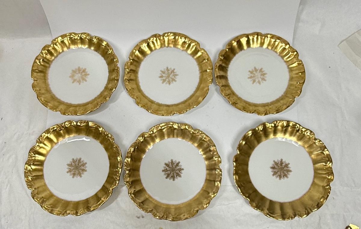 Antique LS & S Limoges France Gold Plate Lot, 6 pc set