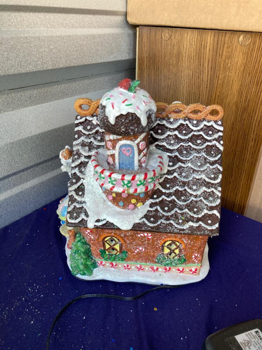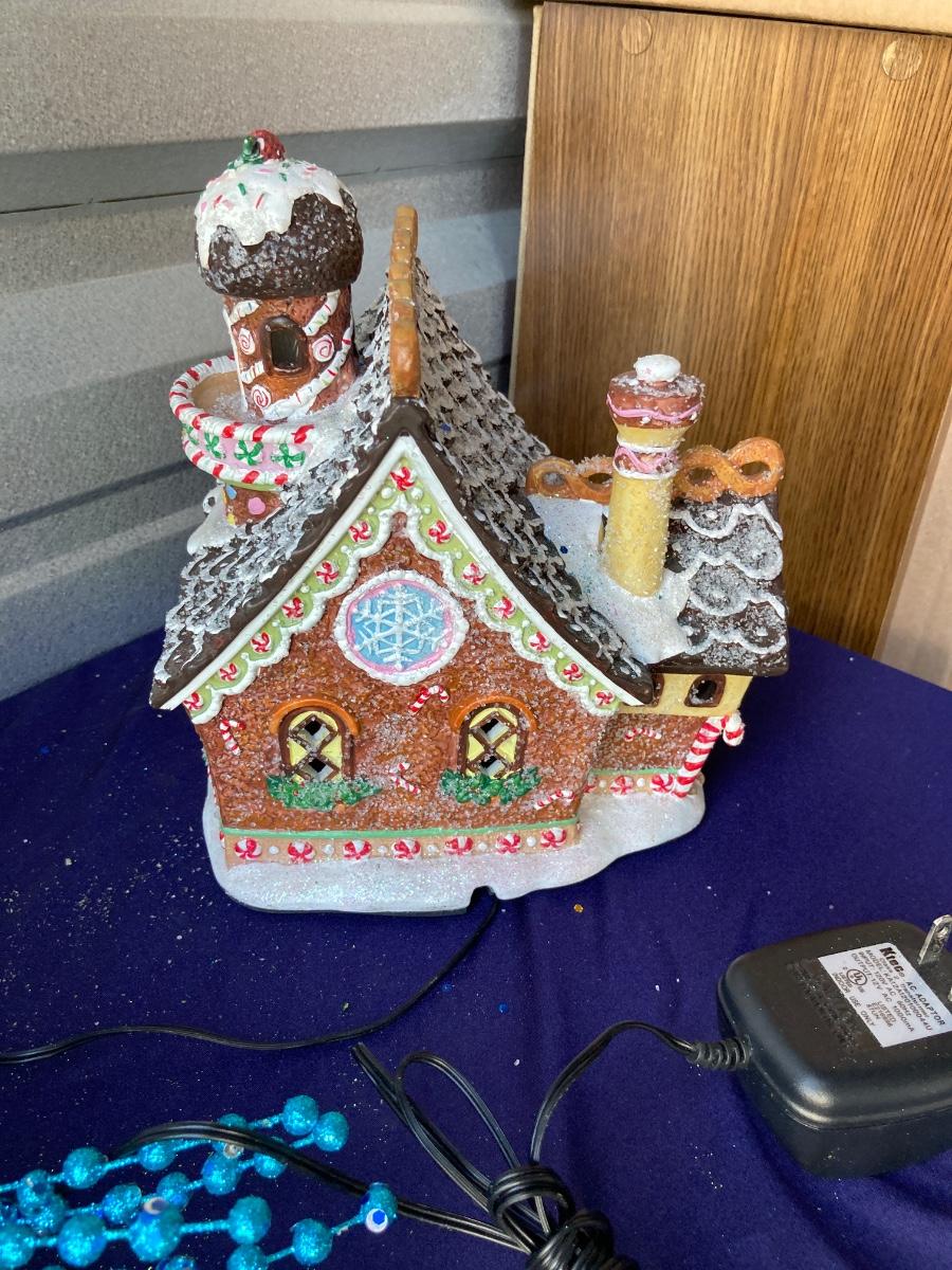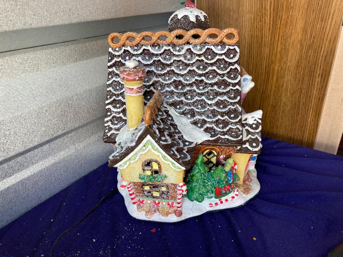 FIBER OPTIC CHRISTMAS COTTAGE AND SPARKLING FOLIAGE
