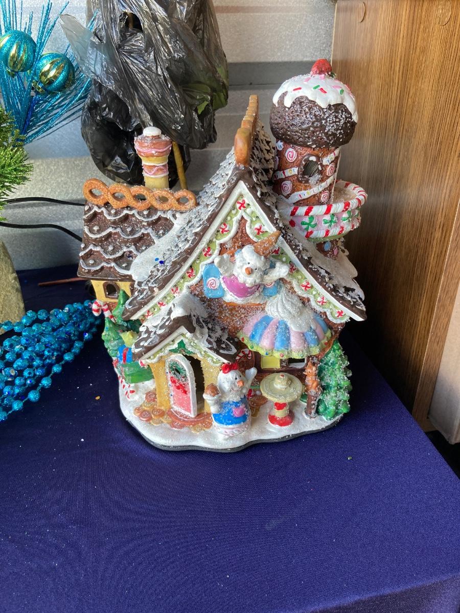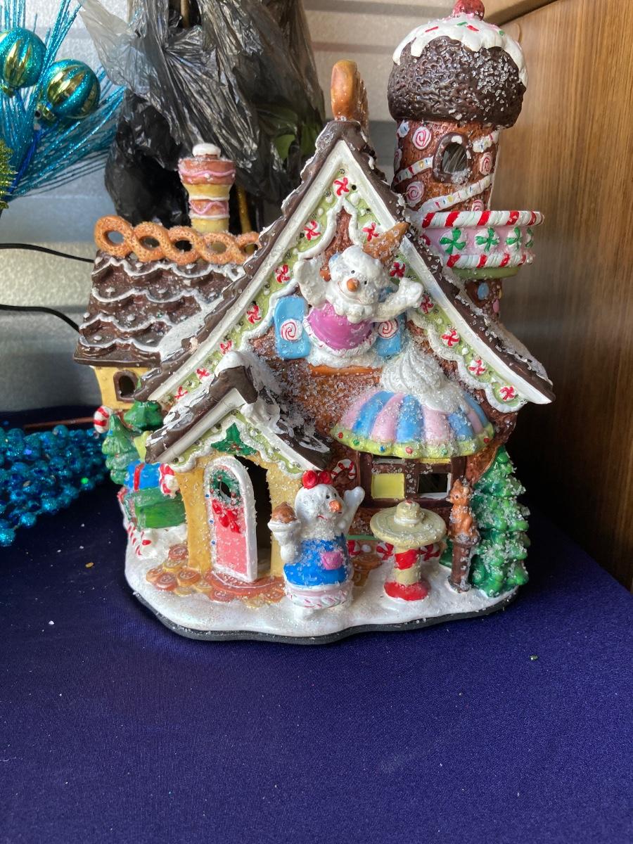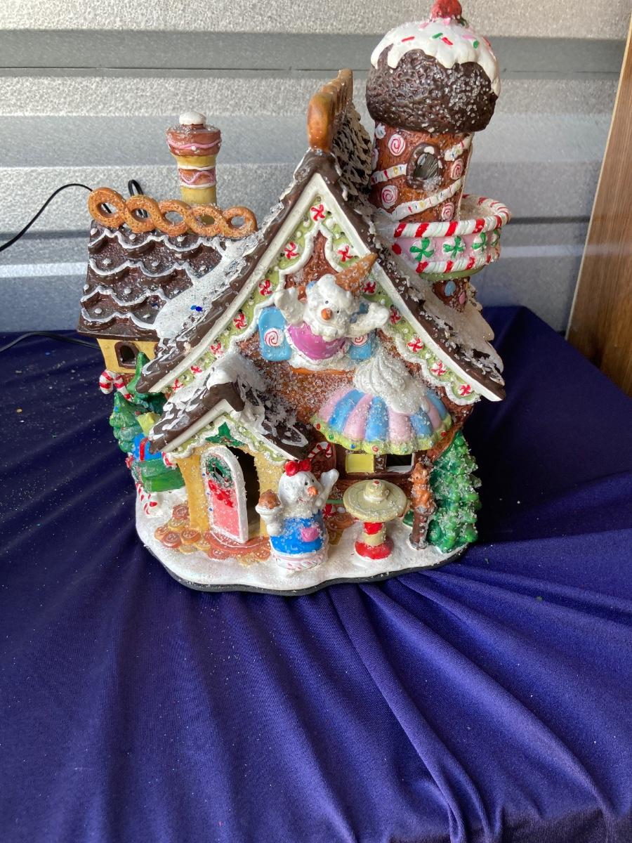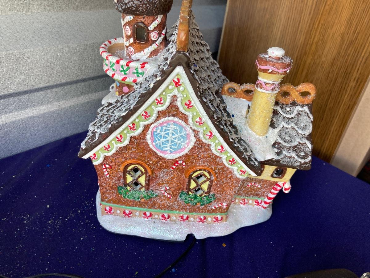 FIBER OPTIC CHRISTMAS COTTAGE AND SPARKLING FOLIAGE