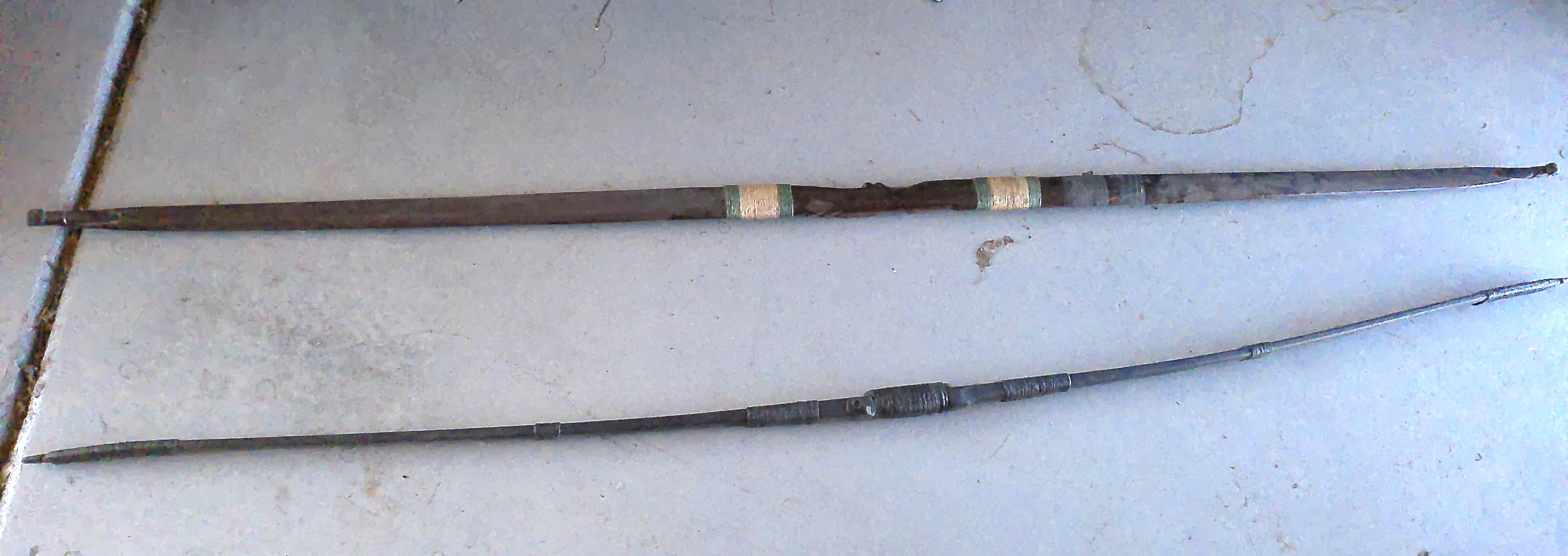 These 2 bow's were handmade with fiberglass comes with 8 arrows and 4 extra arrow tips, comes with 1 string, in good condition