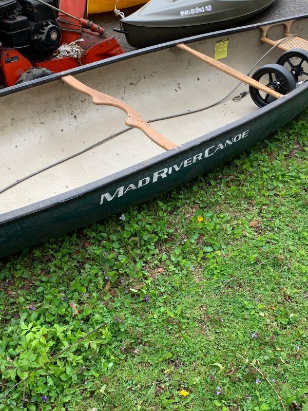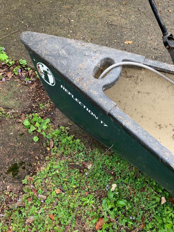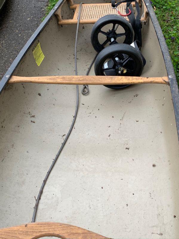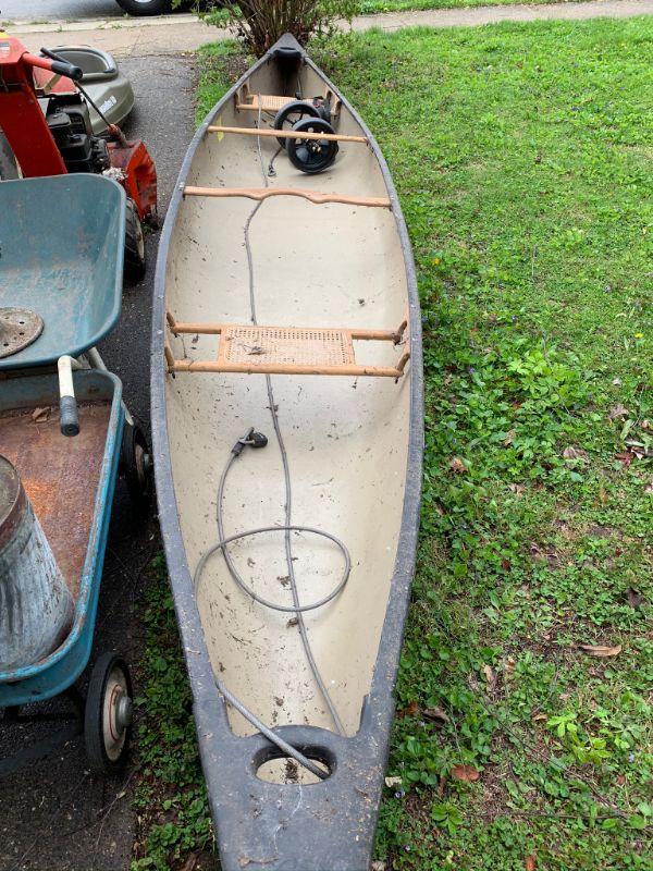 17 foot fiberglass canoe with double wicker seats , nice condition