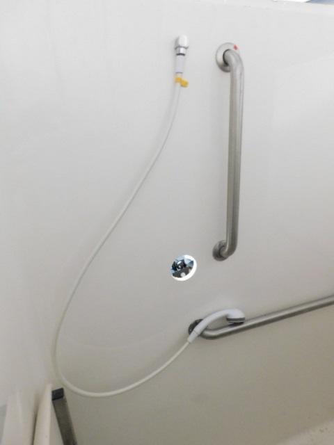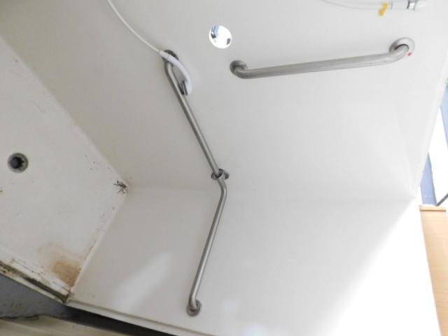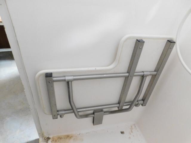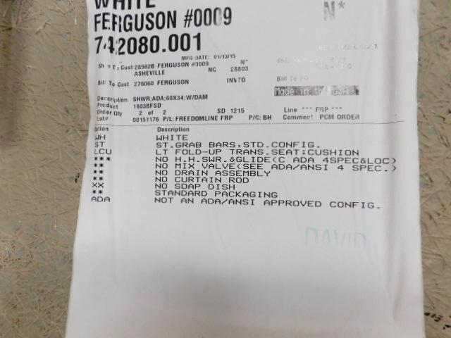 Fiberglass Shower Insert with Factory Grab Bars and Fold Down Shower Seat 60"x36"x77" in used condition see all pics